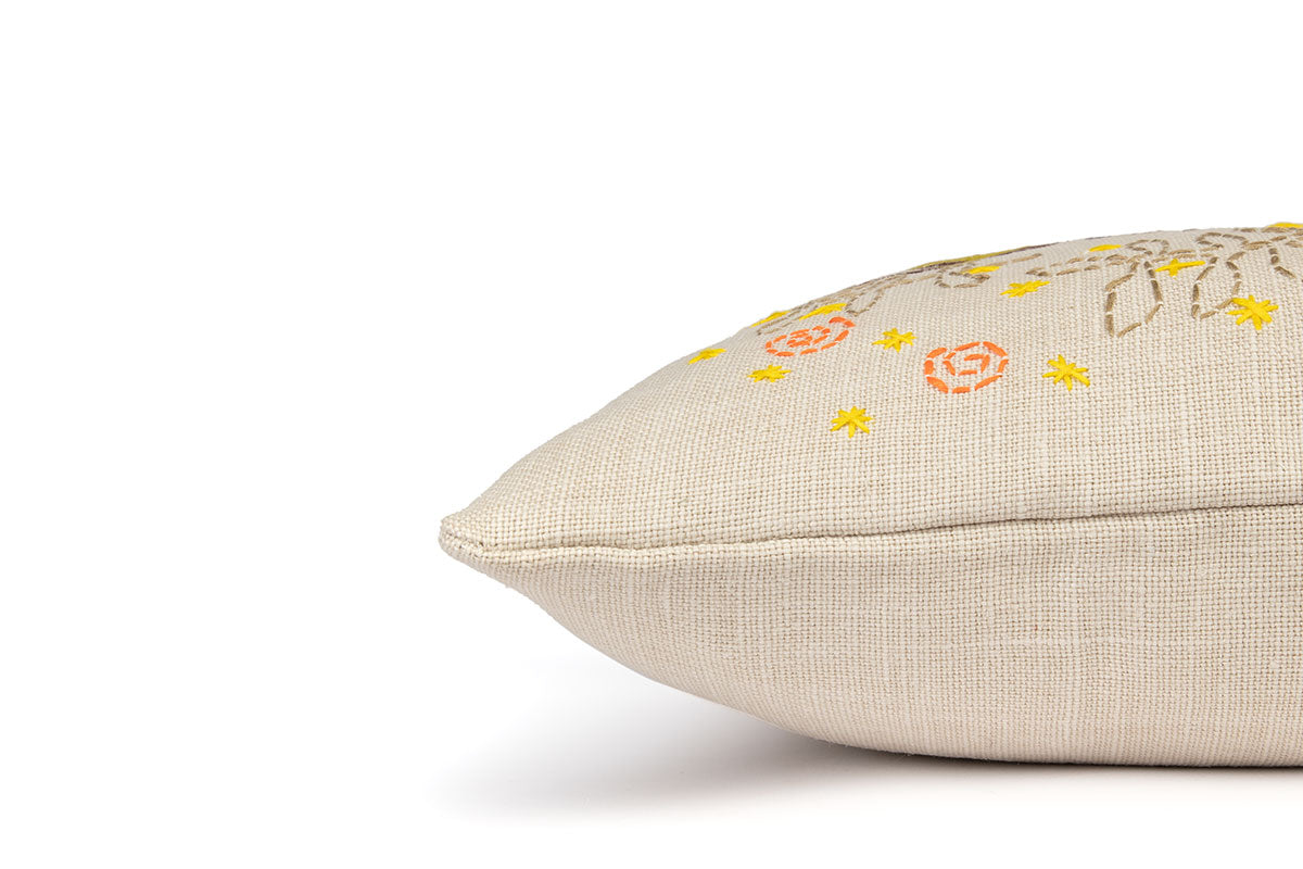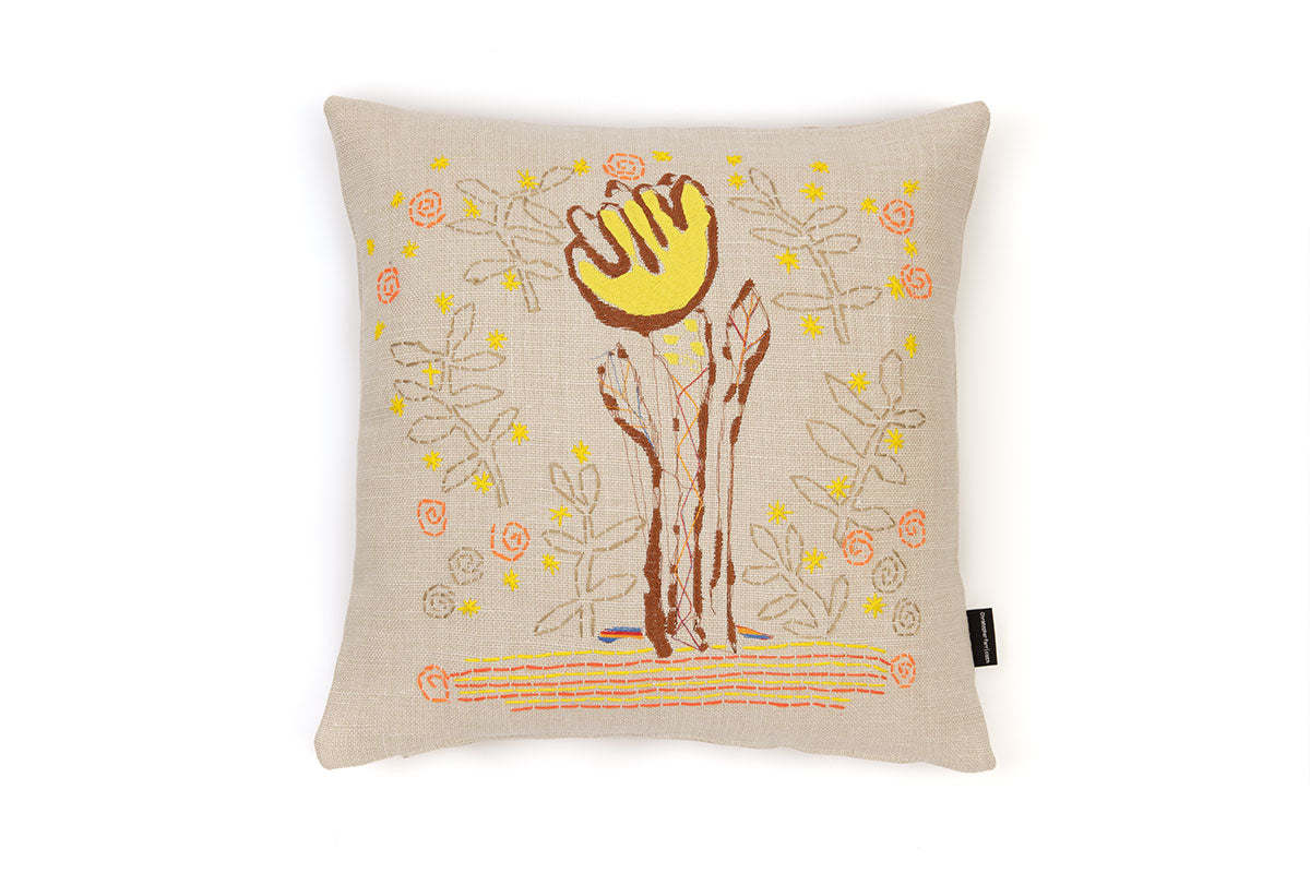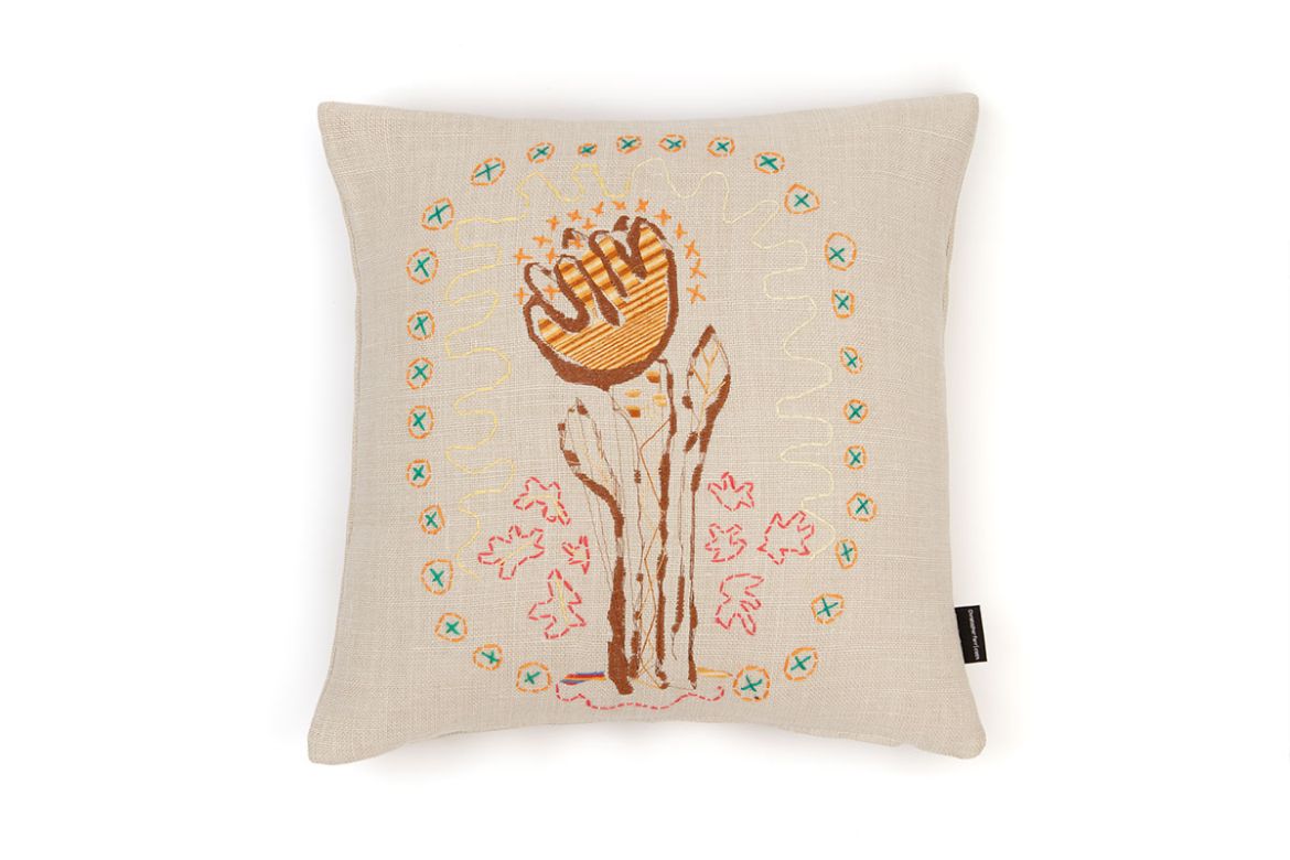 Christopher Farr Cloth has collaborated with Alice Kettle, a contemporary textile artist and Professor of Textiles at Manchester School of Art, Manchester Metropolitan University on a special cushion project with craft groups of refugees. As part of this project Alice has also created a series of cushions using techniques she has learned from the refugees and has incorporated them with her distinctive design aesthetic. Material: 100% Linen