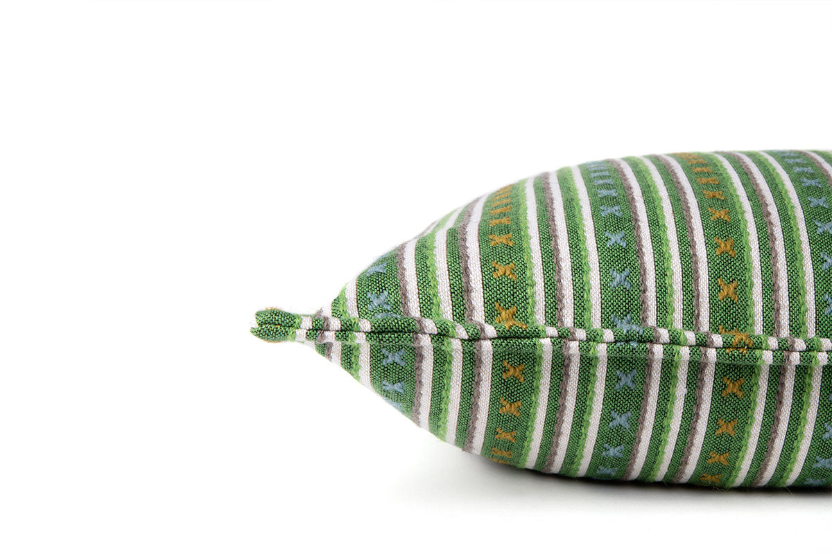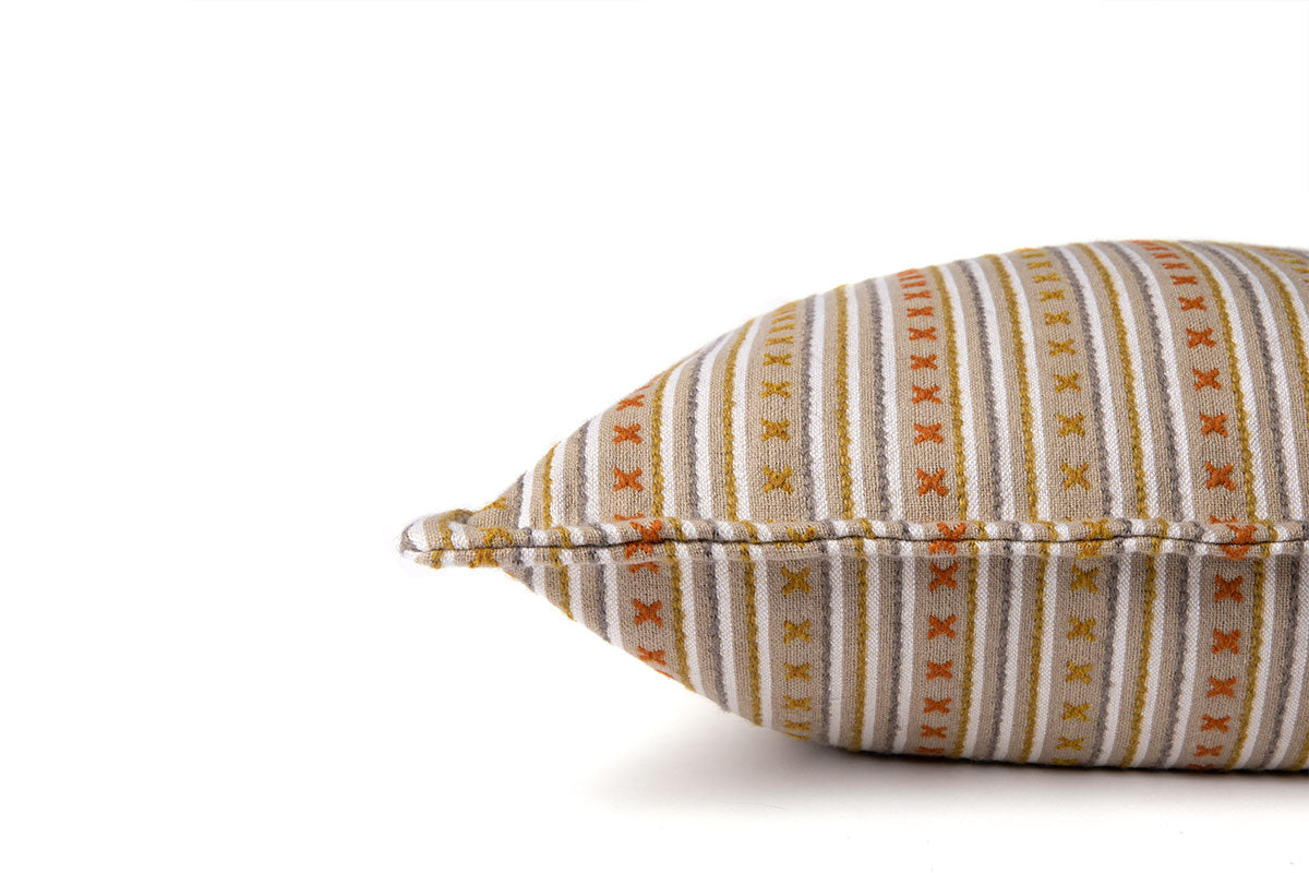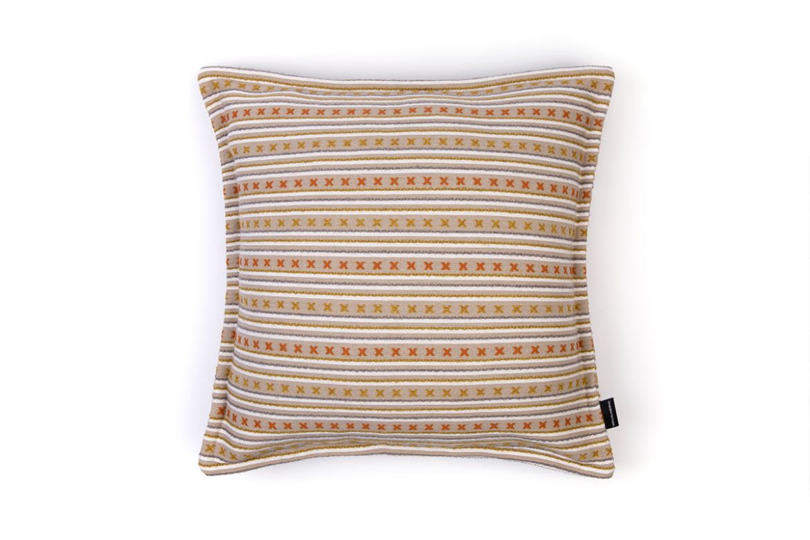 'Criss Cross' is a textured weave by Kit Kemp that features a small repetitive motif. The small X motif represents a fabric stitch, in particular the uneven cross-stitch that joins together old South American blankets. The cushion is presented in three unique colourways of the fabric. Material: 58% Cotton 23% Polyacrylic 7% Virgin Wool 3% Viscose 3% Polyamide 3% Polyester 3% Alpaca