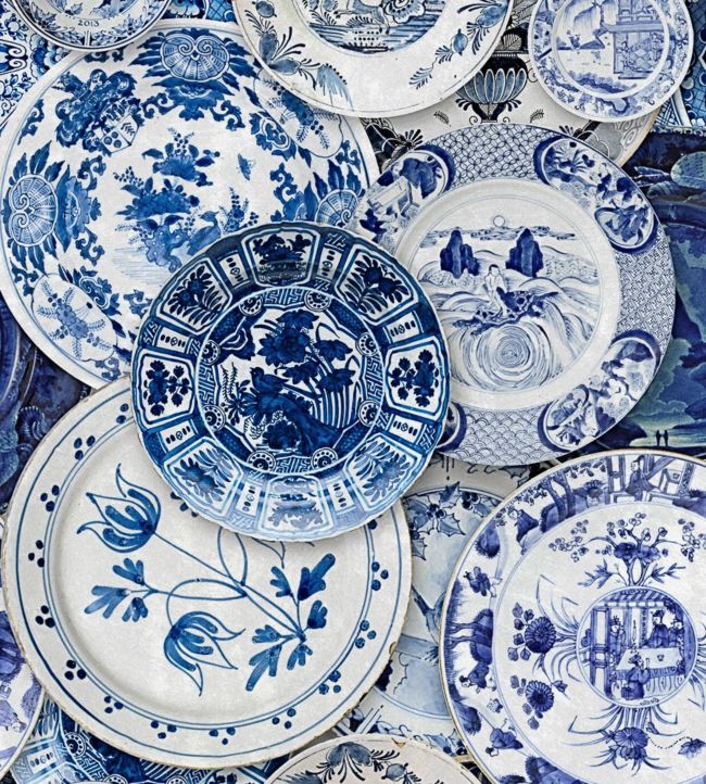 A mesmerizing collection of Delftware, which are blue and white pottery made in the 16th century, around Delft.