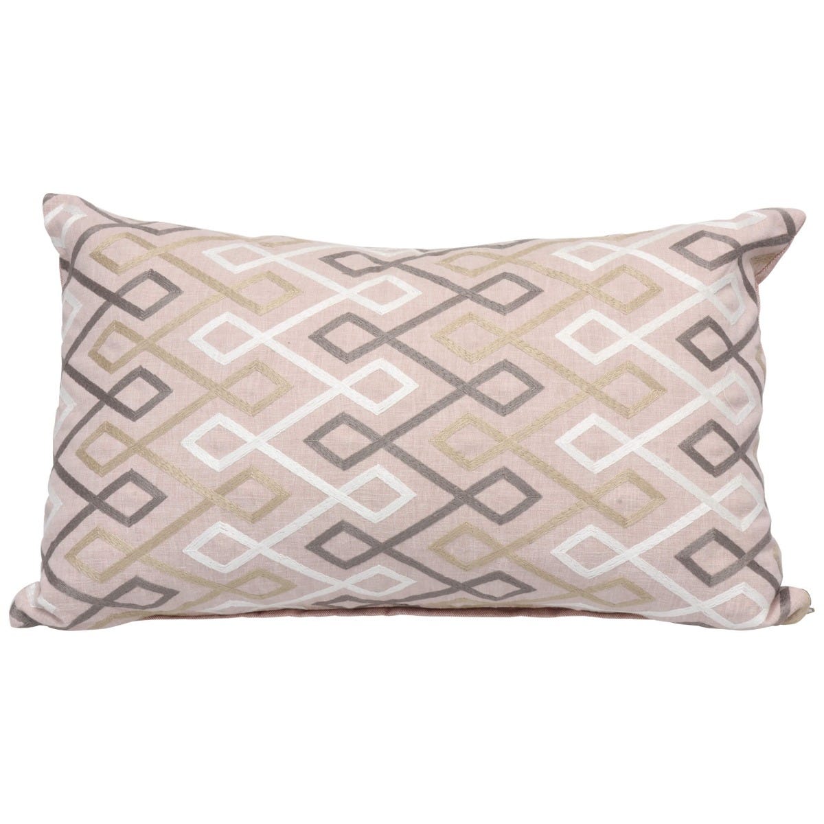 Florence Geometric Embroidered Pink Oblong Cushion