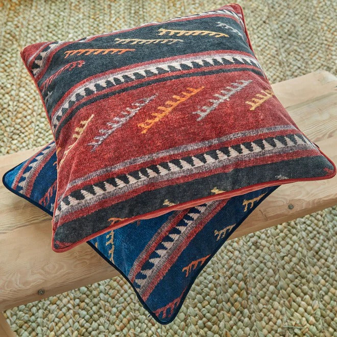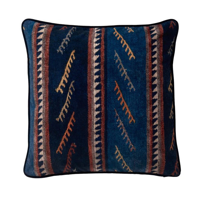 Based on a Turkish kilim found on our travels, this luxurious cushion has a rustic-style stripe that looks like embroidery but is actually soft, printed velvet. It's backed and piped in Navy from our Omega velvet collection. The cushion is filled with the finest sourced duck feather and down for ultimate comfort.