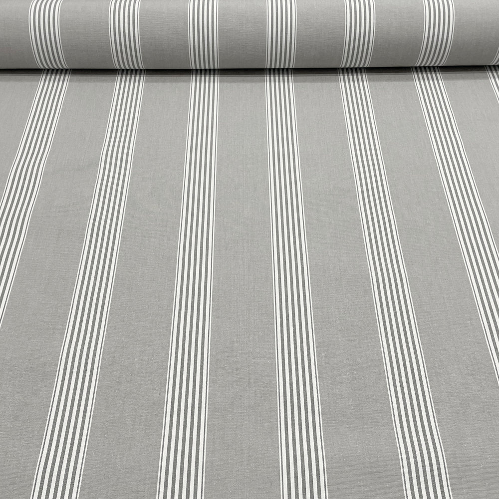 One of our most popular fabrics, this stripe is printed on a luxurious cotton and features a contemporary, multi-striped design.