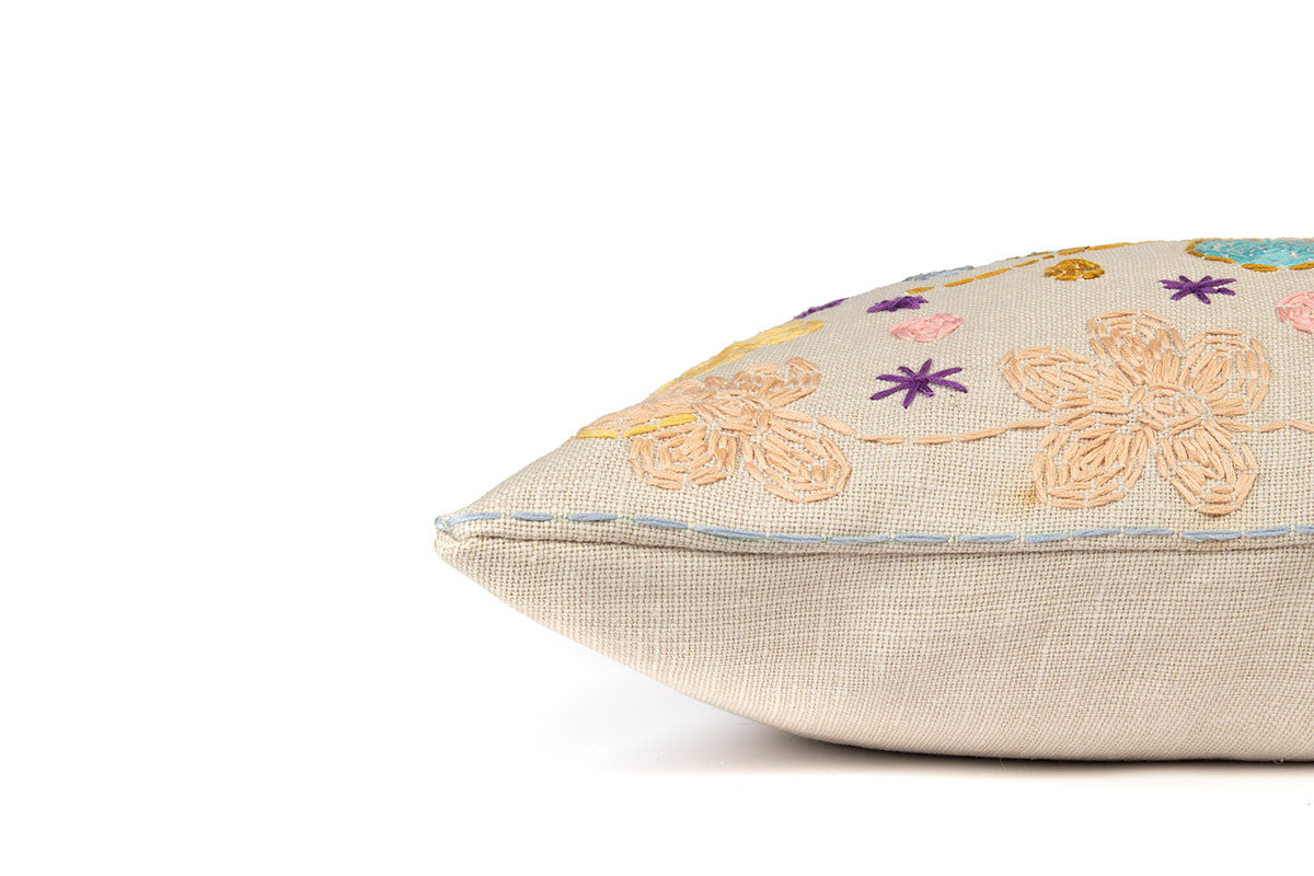 Christopher Farr Cloth has collaborated with Alice Kettle, a contemporary textile artist and Professor of Textiles at Manchester School of Art, Manchester Metropolitan University on a special cushion project with craft groups of refugees. With Alice’s guidance and support, the brand has commissioned individuals from craft groups across the UK to create a collection of hand-embroidered cushions featuring distinctive running stitched designs. The program continues Alice’s ongoing work with Bridges for Communities and Arnolfini’s Women’s Craft Group in partnership with the Bristol Refugee Festival. Material: 100% Linen