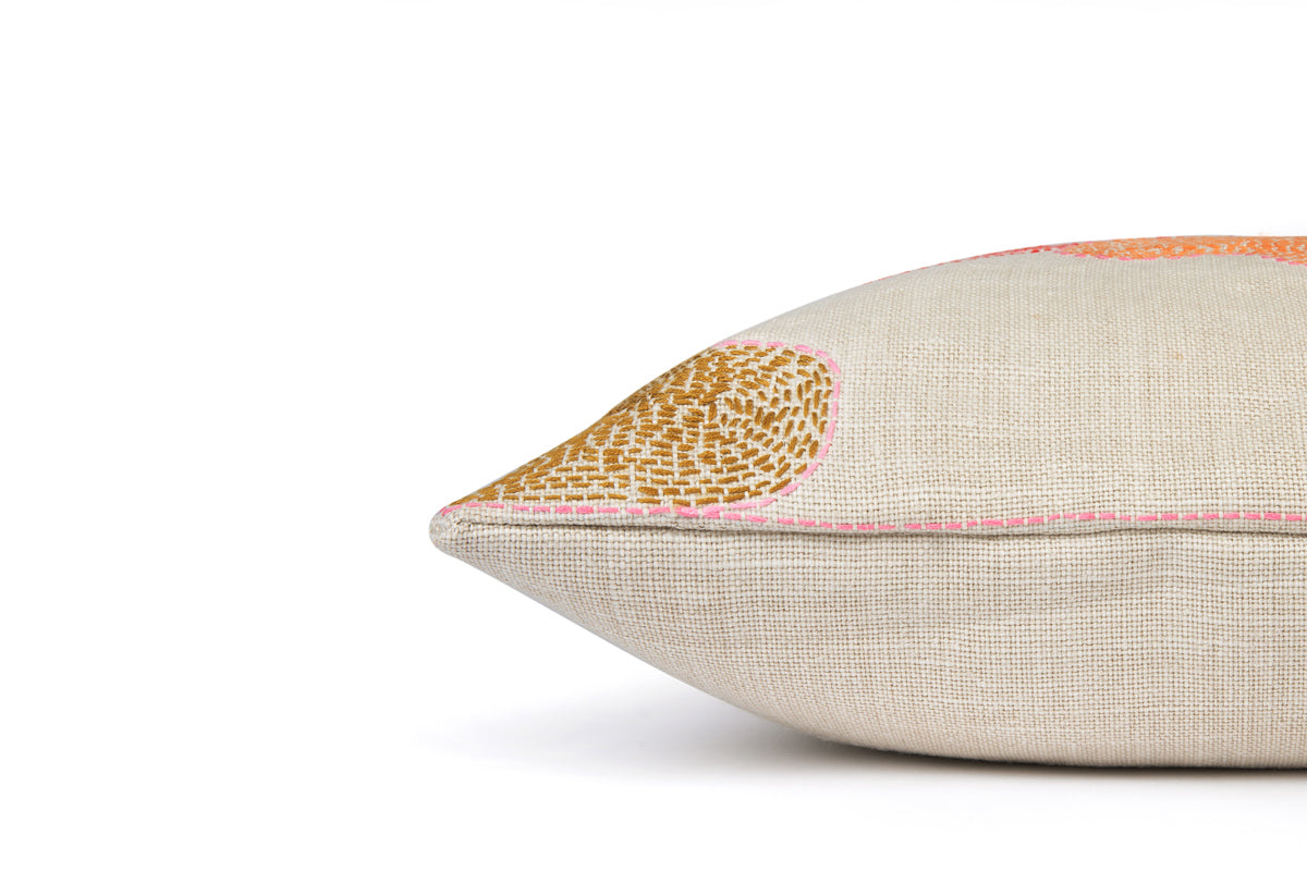 Christopher Farr Cloth has collaborated with Alice Kettle, a contemporary textile artist and Professor of Textiles at Manchester School of Art, Manchester Metropolitan University on a special cushion project with craft groups of refugees. With Alice’s guidance and support, the brand has commissioned individuals from craft groups across the UK to create a collection of hand-embroidered cushions featuring distinctive running stitched designs. The program continues Alice’s ongoing work with Bridges for Communities and Arnolfini’s Women’s Craft Group in partnership with the Bristol Refugee Festival. Material: 100% Linen