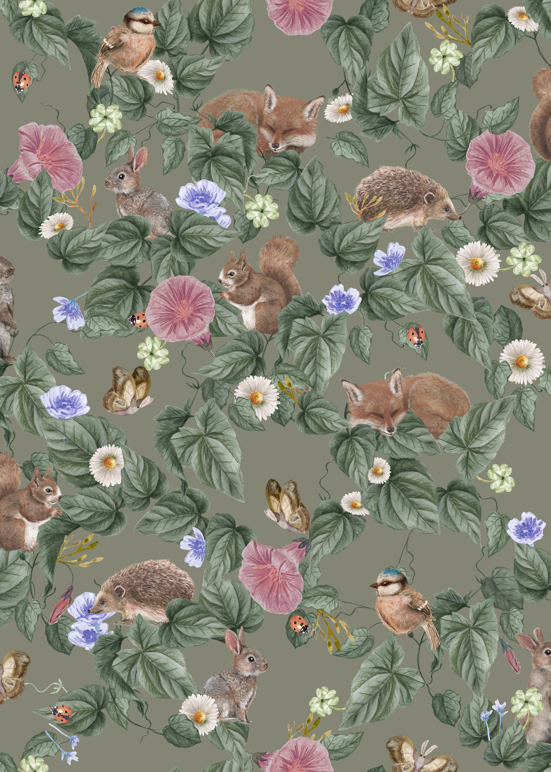 Forest Lullaby Nursery Wallpaper - Dusty Rose