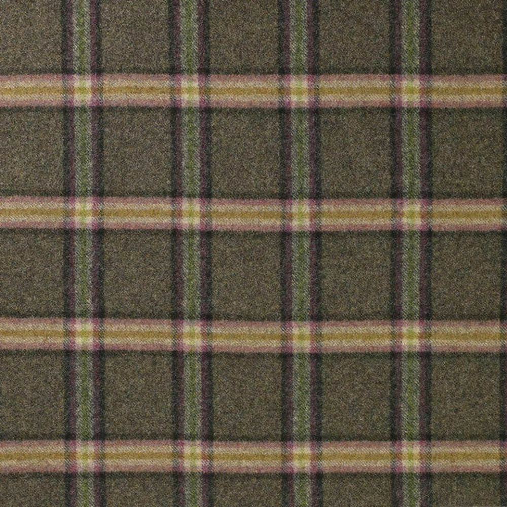 A traditional check wool from Abraham Moon. Woven on a durable cloth, this fabric features hues of purple on a rich brown back.