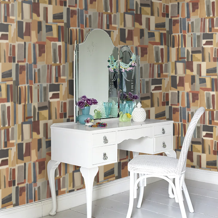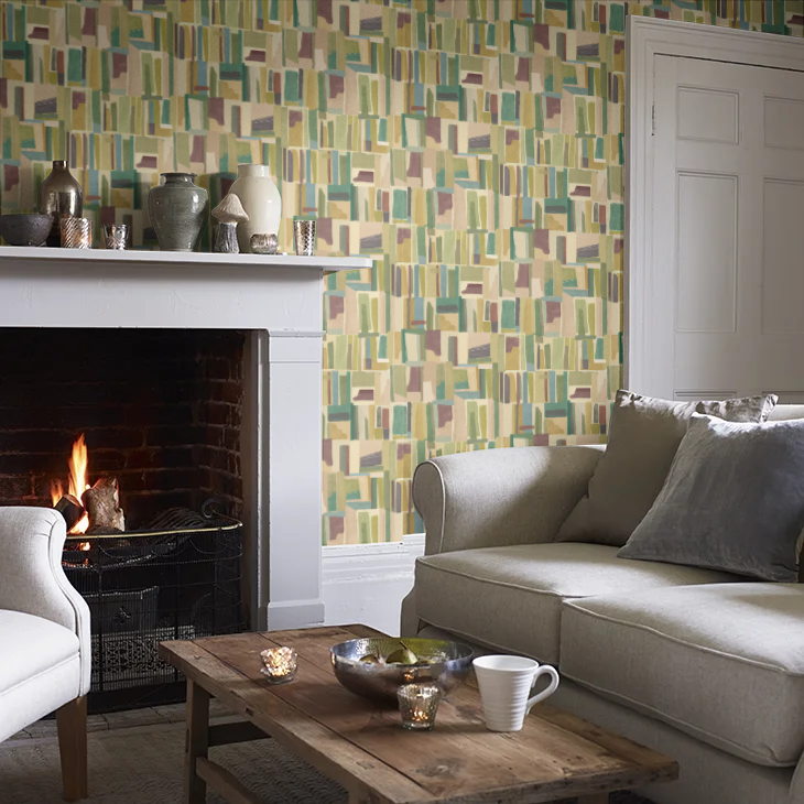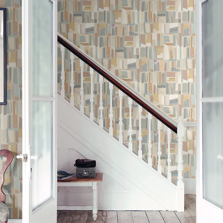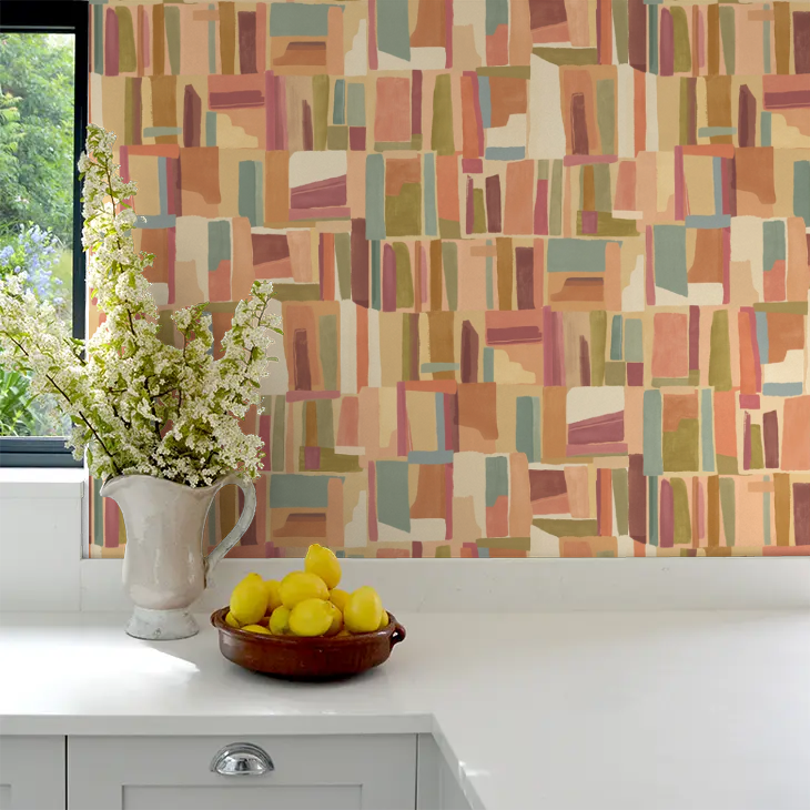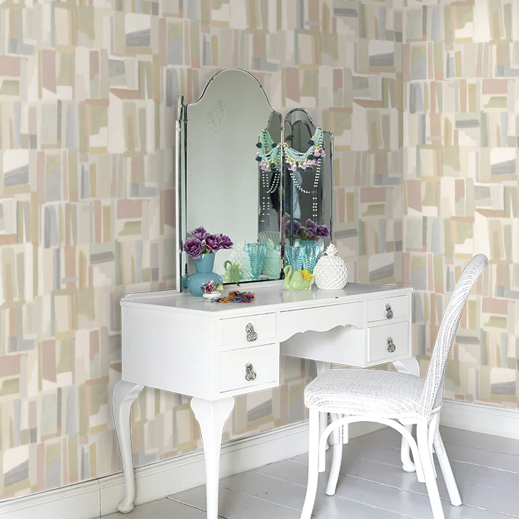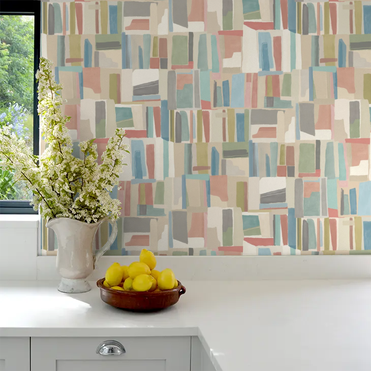 Inspired by architecture and the aerial view of cities and buildings, this urban design exudes a gentle, organic softness. Subtle watercolour gradients flow across blocks of varying shapes and sizes, creating an interlocking pattern that comes together to form a striking statement wall.