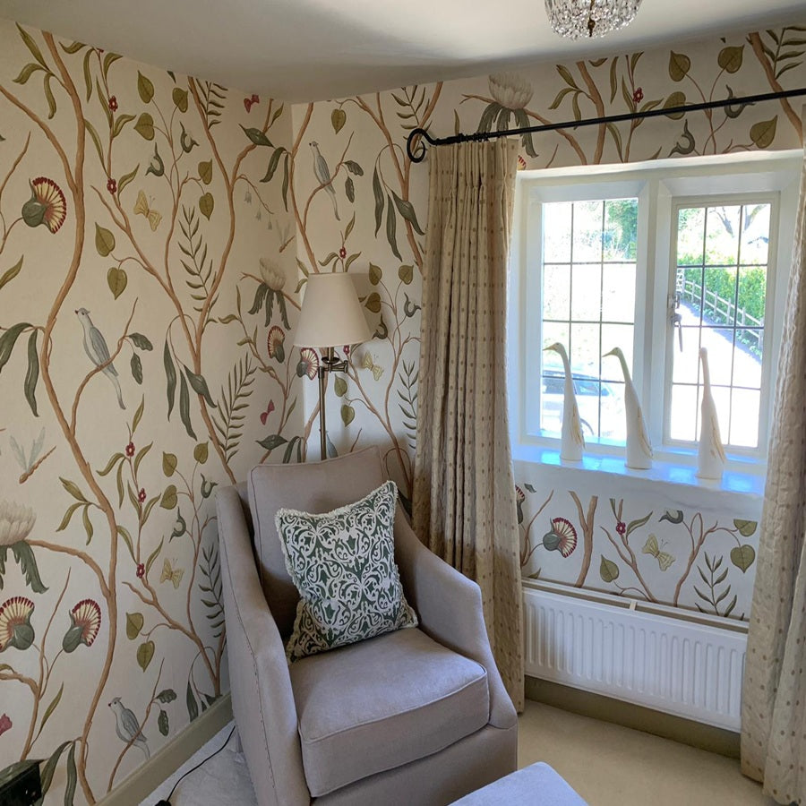 Adam's Eden Wallpaper by Lewis & Wood for the Study is a beautifully designed wall covering that evokes a sense of tranquility and inspiration. Featuring lush greenery and intricate floral patterns, it creates a serene atmosphere ideal for focused work or study. The design embodies a harmonious blend of nature and elegance, making it suitable for various interior styles. The wallpaper is crafted from high-quality materials, ensuring durability while adding a touch of sophistication to your study environment.