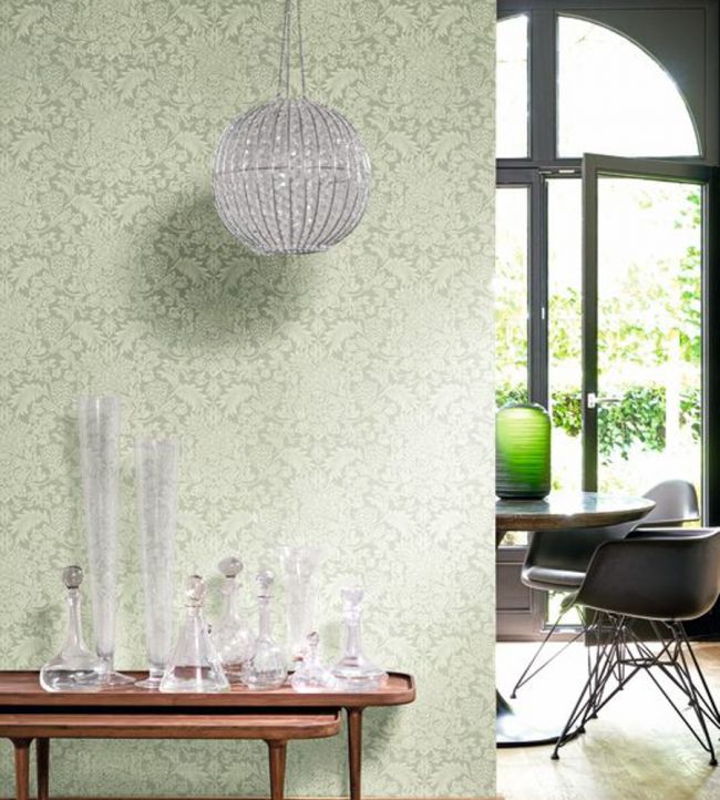 Like traditional English wallpapers, “Adorn” brings its sensitivity and subtle romanticism to a room. The combination of shades are soft, and sometimes amplified by a narrow iridescent border.