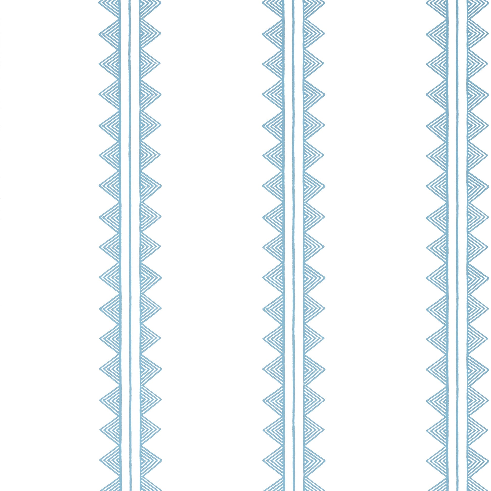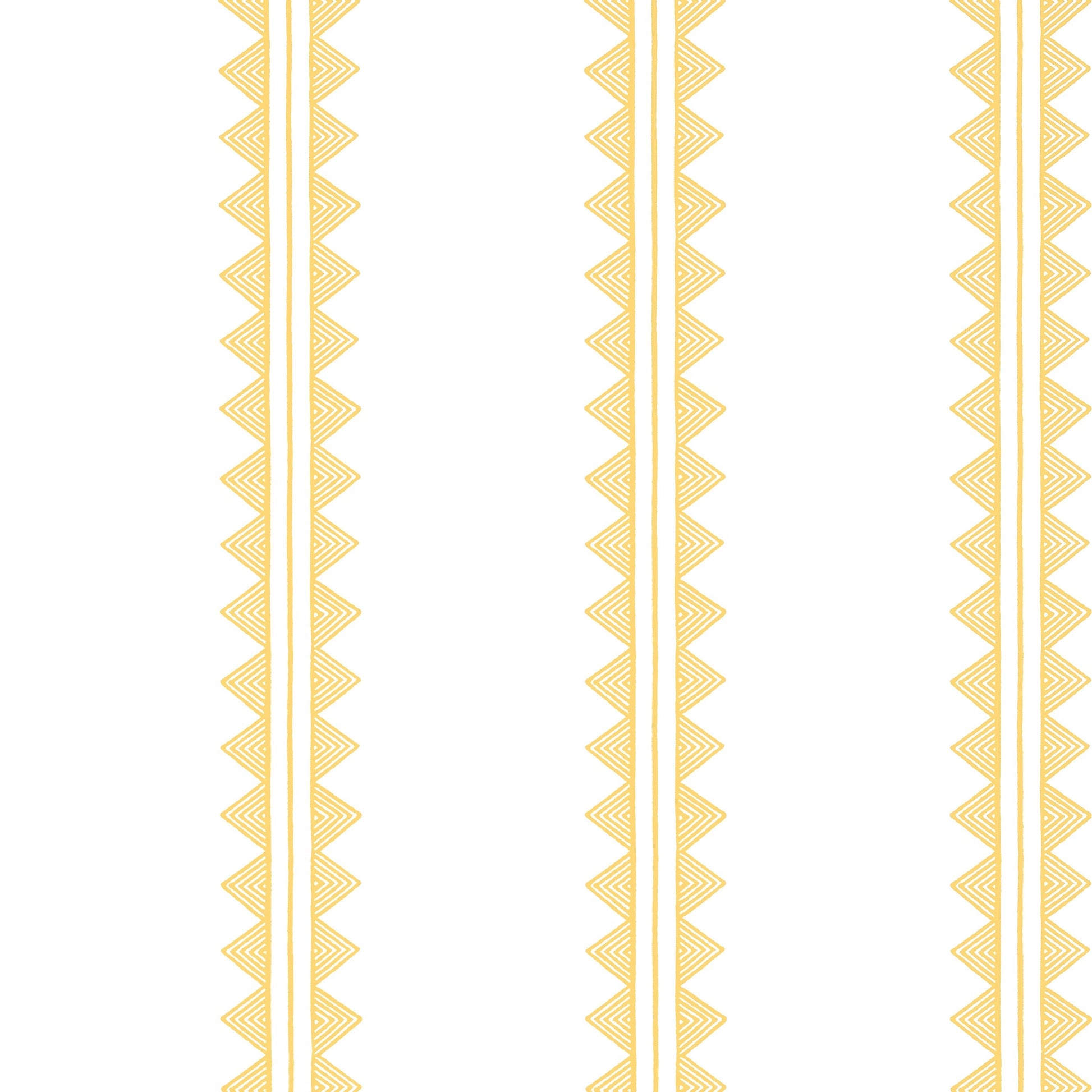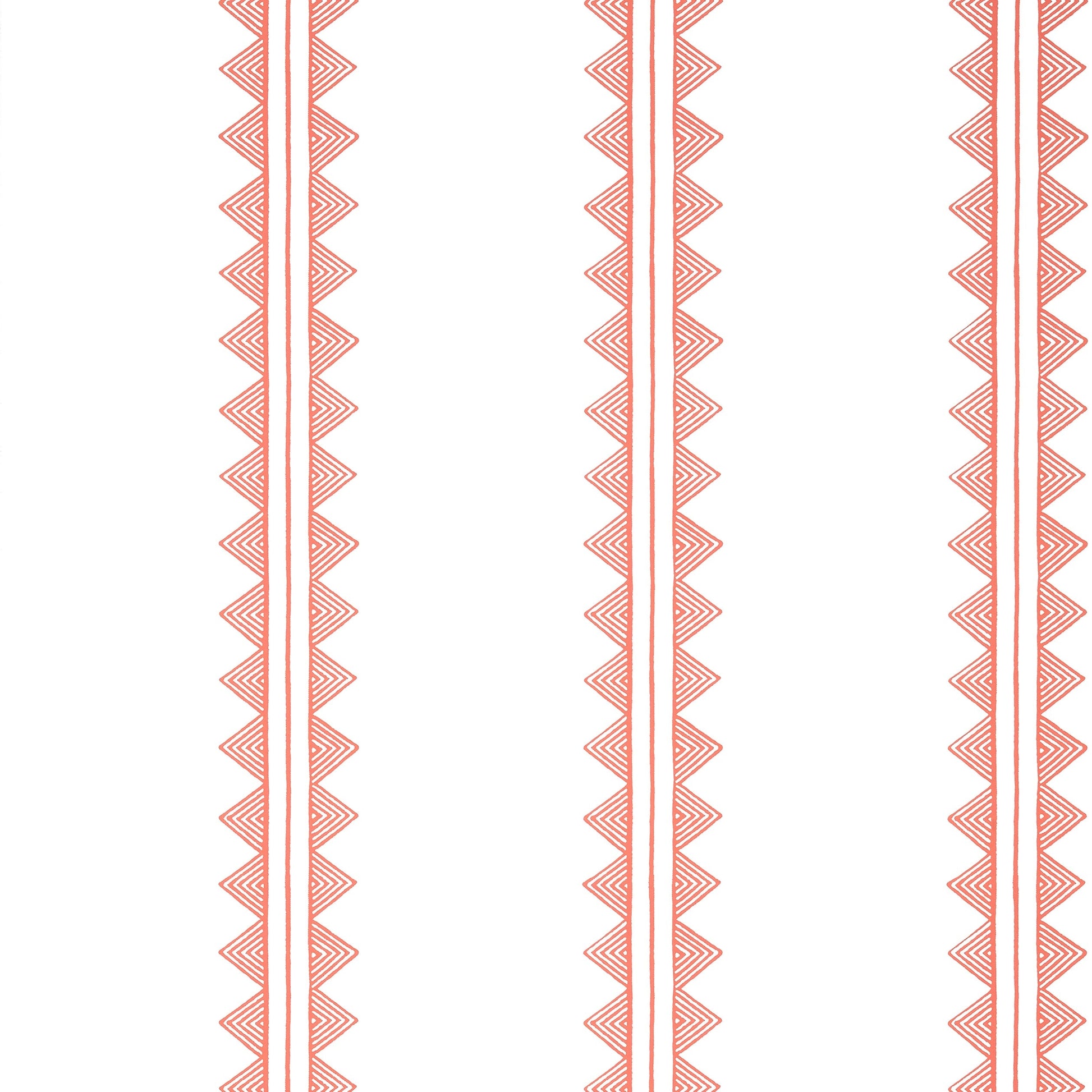 Agave Stripe wallpaper from the Kismet collection offers vibrant pops of colour paired with ample open space for a clean, cheerful aesthetic. This design presents a simplified interpretation of a block print fabric, bringing a playful yet streamlined energy to any space.
