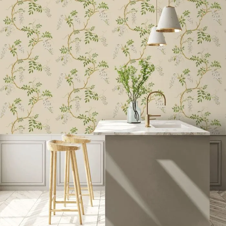Alderney wallpaper by Colefax & Fowler is a popular choice for kitchen decor, known for its charming designs and durability. This wallpaper often features patterns inspired by nature, traditional motifs, or contemporary styles, making it versatile for various kitchen aesthetics.