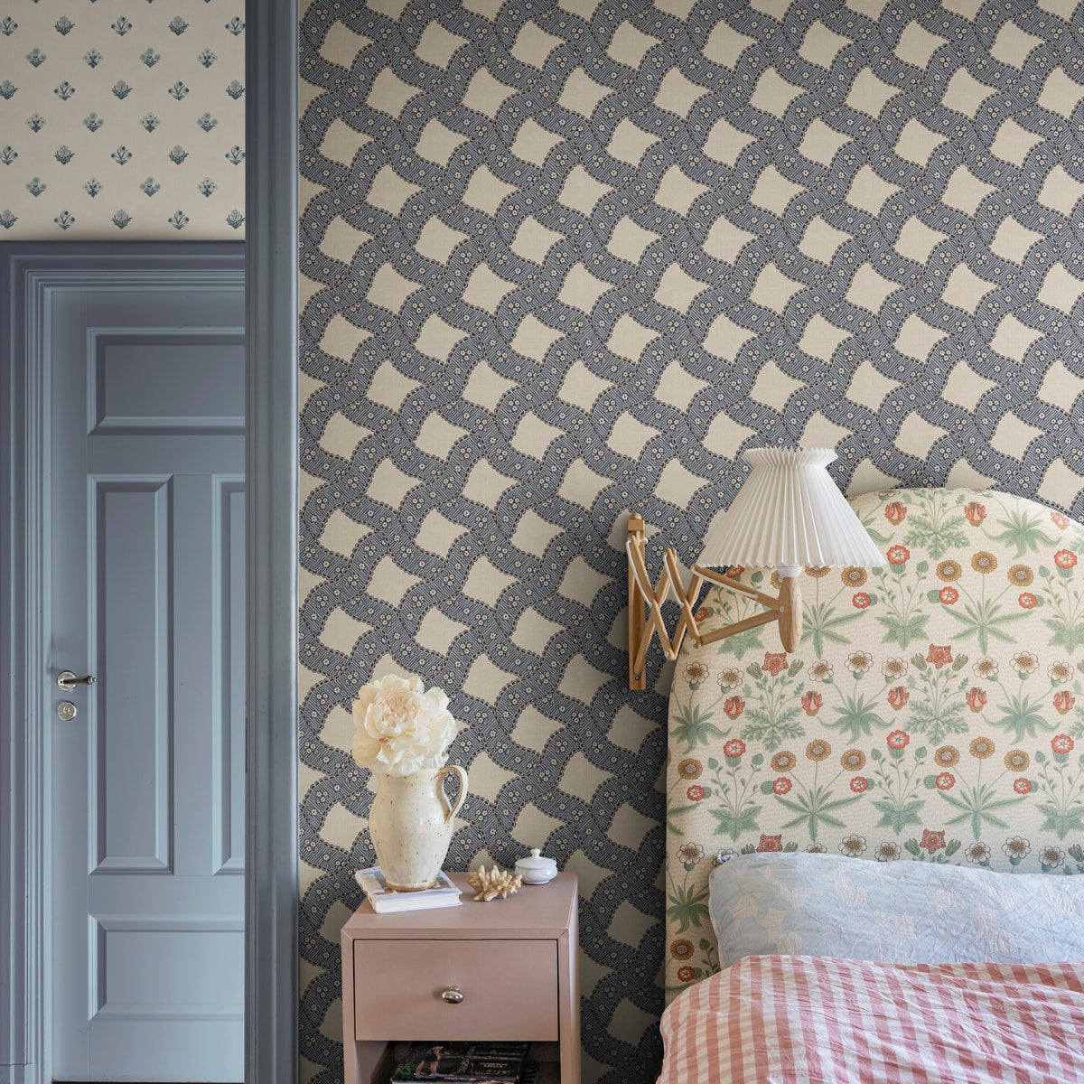 Annie is a delightful medallion wallpaper inspired by 18th-century French design. With its intricate floral patterns and timeless elegance, it adds a sweet touch to any room and stands out with its classic yet modern charm.