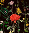 Decorative vintage floral illustrations on black background, which can create a wall full of color and mystery.