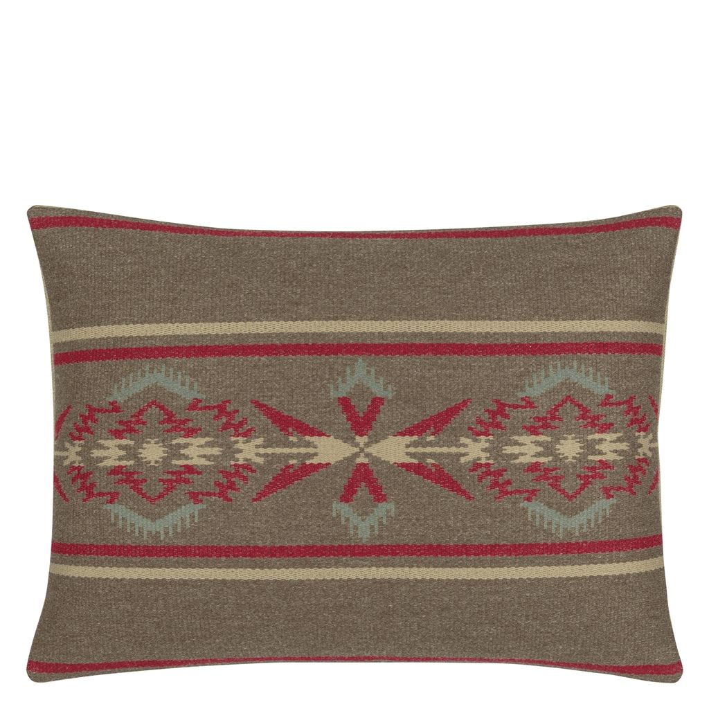 A classic part of the Ralph Lauren brand, this trading blanket inspired design is woven in a heavy weight jacquard with wool. This stylish large rectangular cushion in pumpkin and natural shades is paired with a natural linen on the reverse.