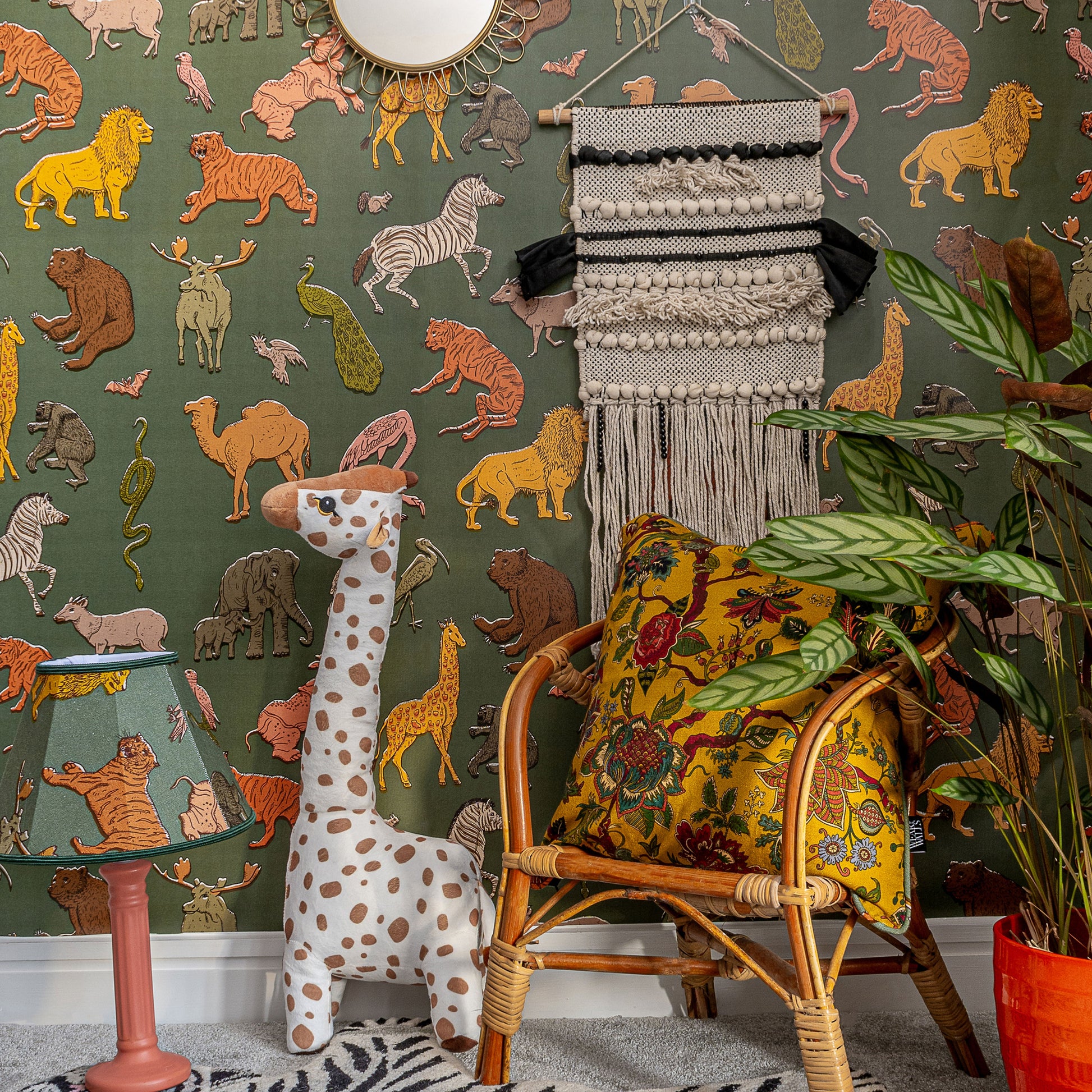 Assemble is a hand drawn line-drawing featuring an infamous ensemble of wildlife including bears, giraffes and flamingos! Digitally printed and wilfully off set to give the hand-made crafted feeling of screen printed paper. This charming paper is so fun, playful and full of personality.