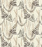 A printed embroidery, depicting layered fern leaves and fronds, overstitched with delicate layered stems.