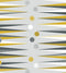 Backgammon is a striking abstract design combining the interplay between chevrons and discs to create a dynamic pattern.