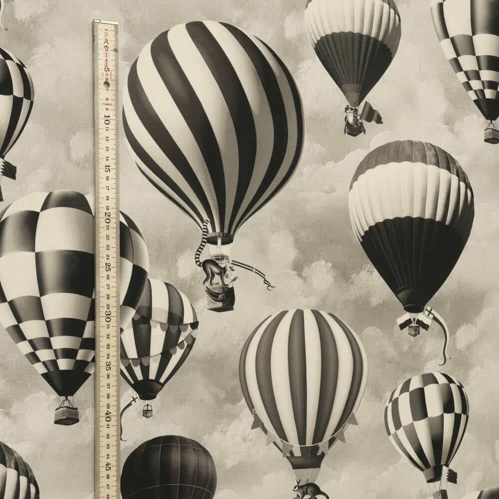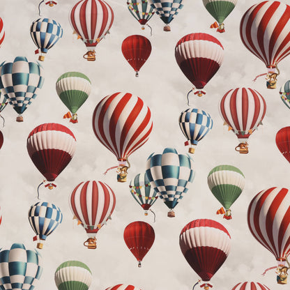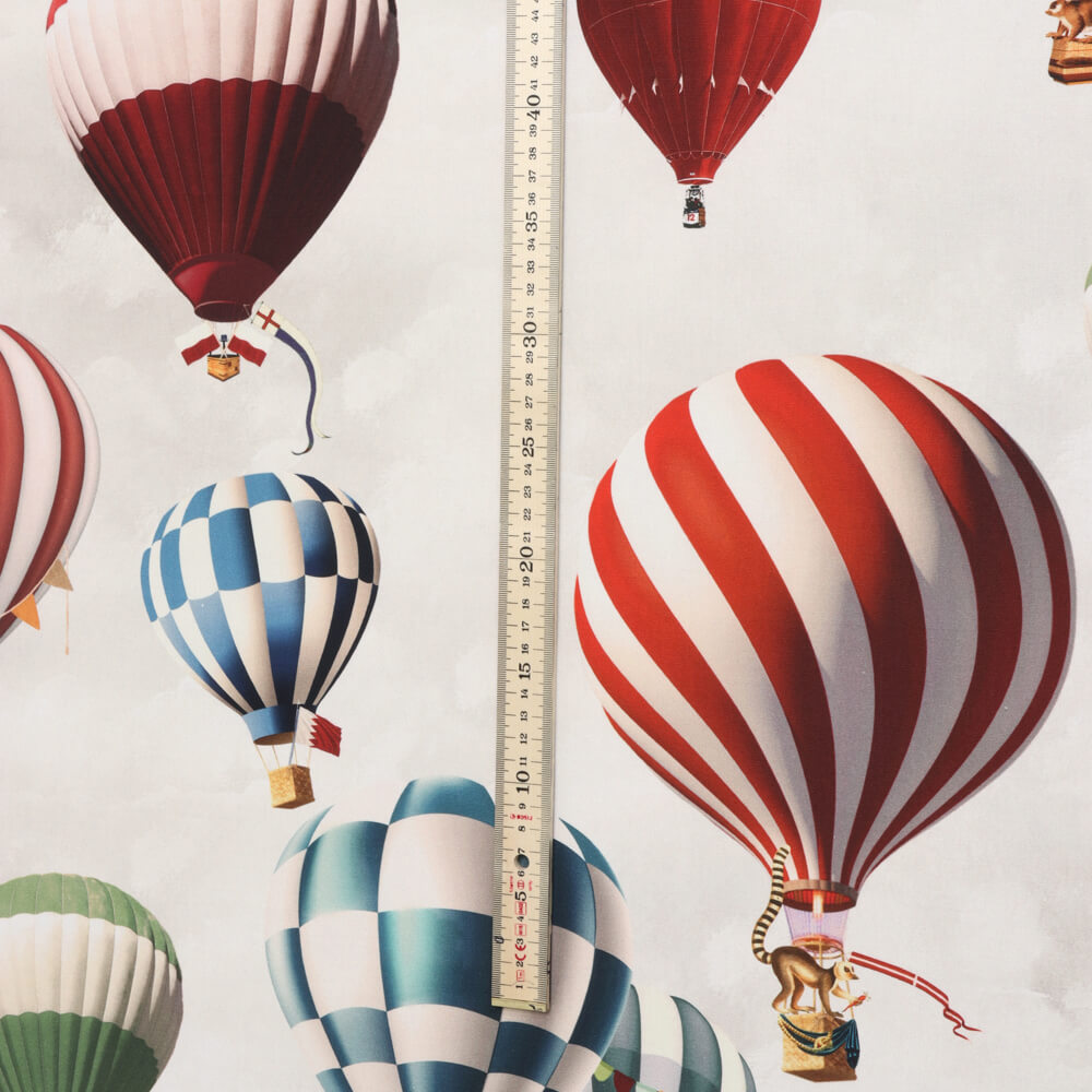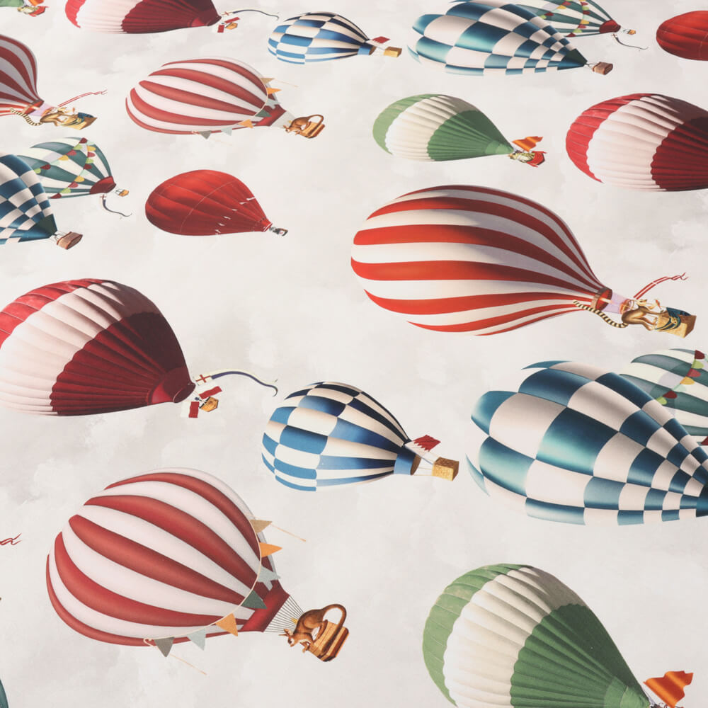A fun, whimsical fabric where the sky is filled with hot air balloons piloted by some furry friends. Balloon Fiesta fabric has a quirky charm, its large pattern repeat making it ideal for large curtains and blinds. Balloon Fiesta is suitable for cushions, blinds, curtains, soft furnishings and upholstery. A fun option for children's rooms and nurseries.
