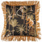 A beautiful tropical style cushion made of Barbados linen fabric showing large scale palm trees and illustrated climbing monkeys. Decorated with MINDTHEGAP Buccaneers embroidered patch. The cushions is finished with burnt gold fringing and a comes with 100% duck feather filling. Composition: 100% Linen