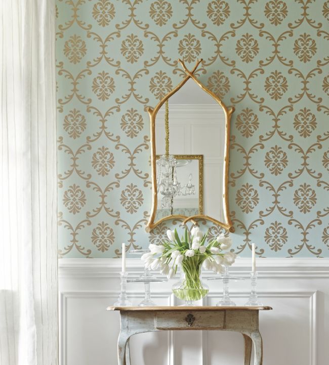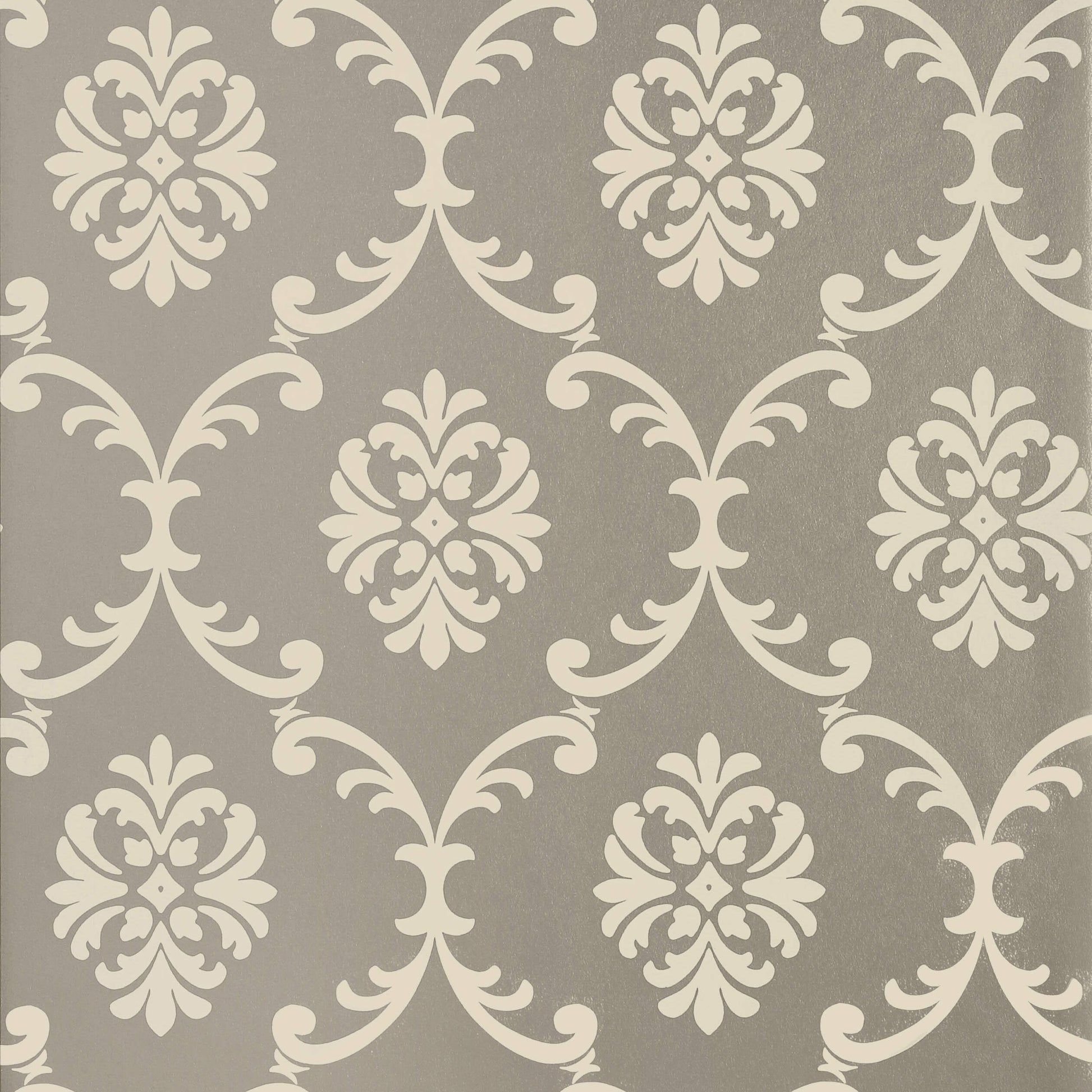 A simplified modern damask, Bastille has an ornate look with large and elegant scrolls that will climb walls with style and poise. This classic, stately pattern has a slightly textured and fibrous ground.