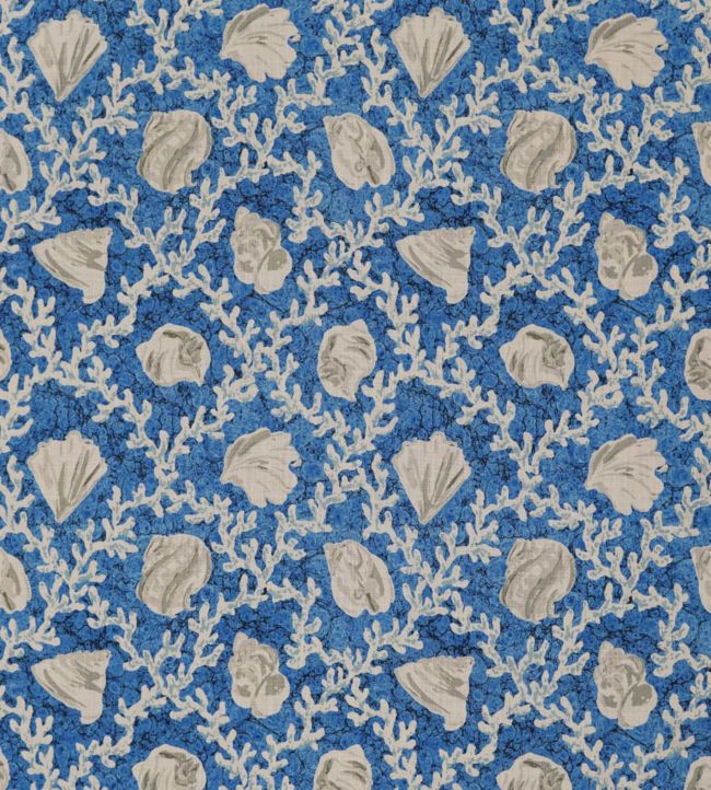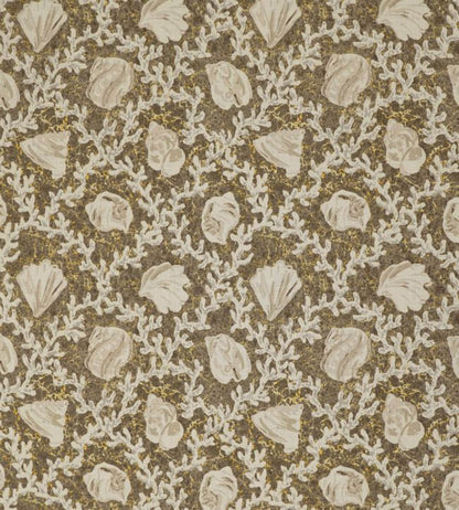 The motifs are held within a classic coral trellis layout, and the background is taken from hand marbled papers which add to the feel of a shoreline. The sand tones are reminiscent of a beach.
