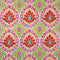 In the manner of the woven ikats from the Indian city of Patan, this embroidery of intertwined coloured threads reveals the splendour of a large pattern on a cotton ground in harmonious and lively tones.