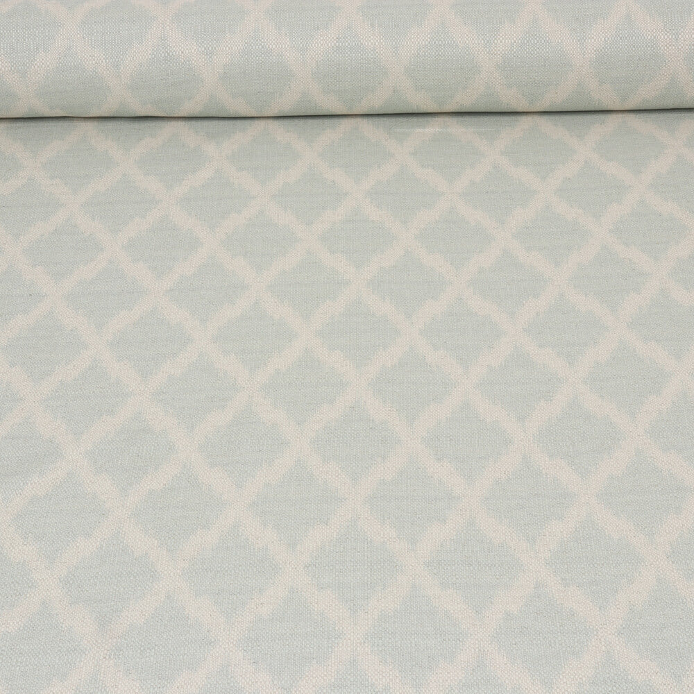 A contemporary ikat style design printed on a high quality cotton / linen blend fabric. This striking fabric is suited for curtains, cushions, blinds and light upholstery.
