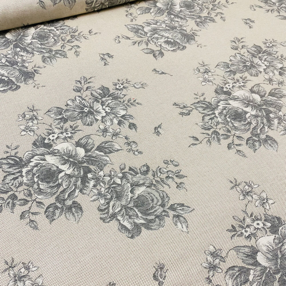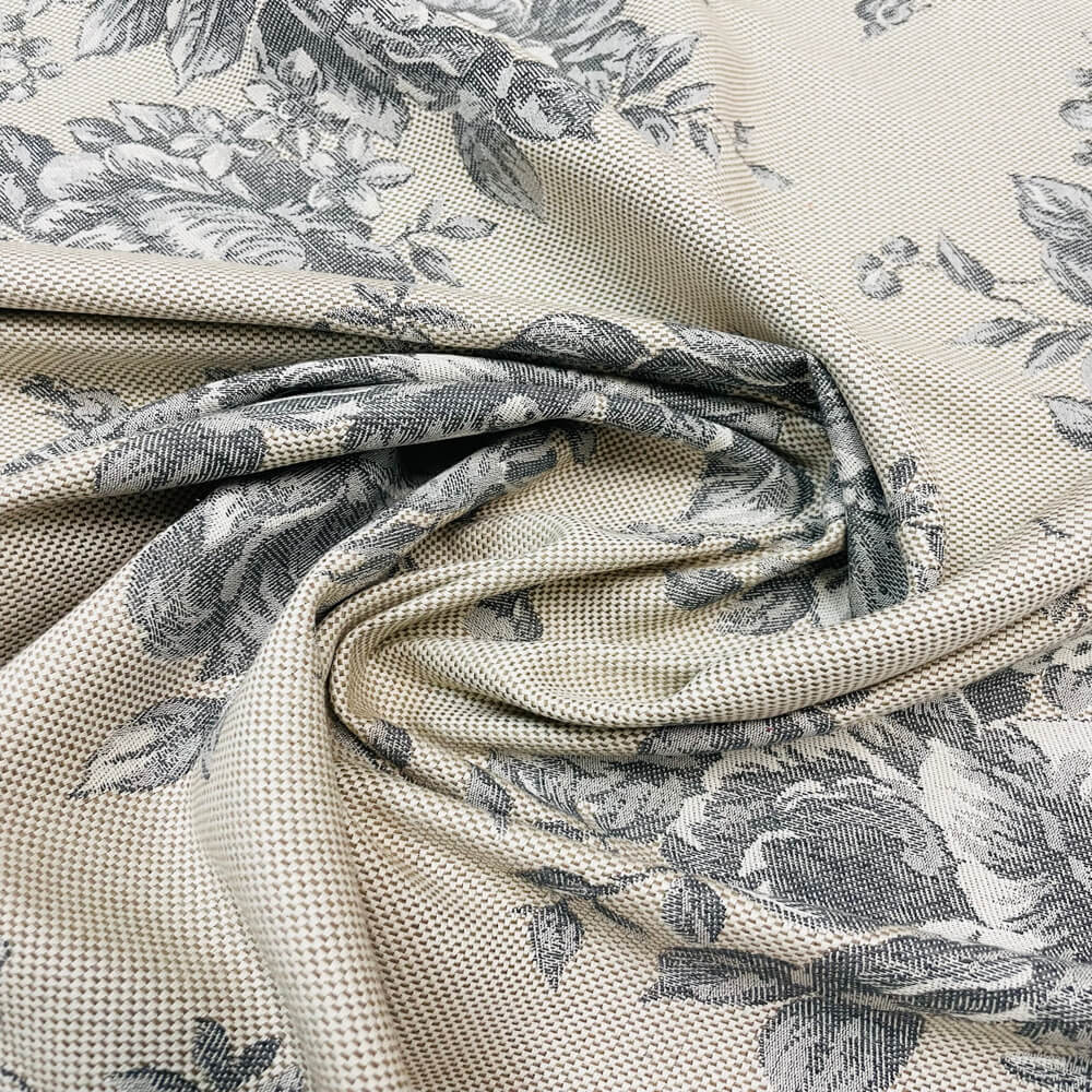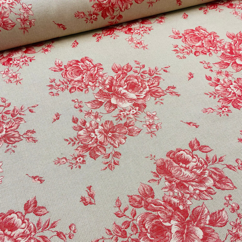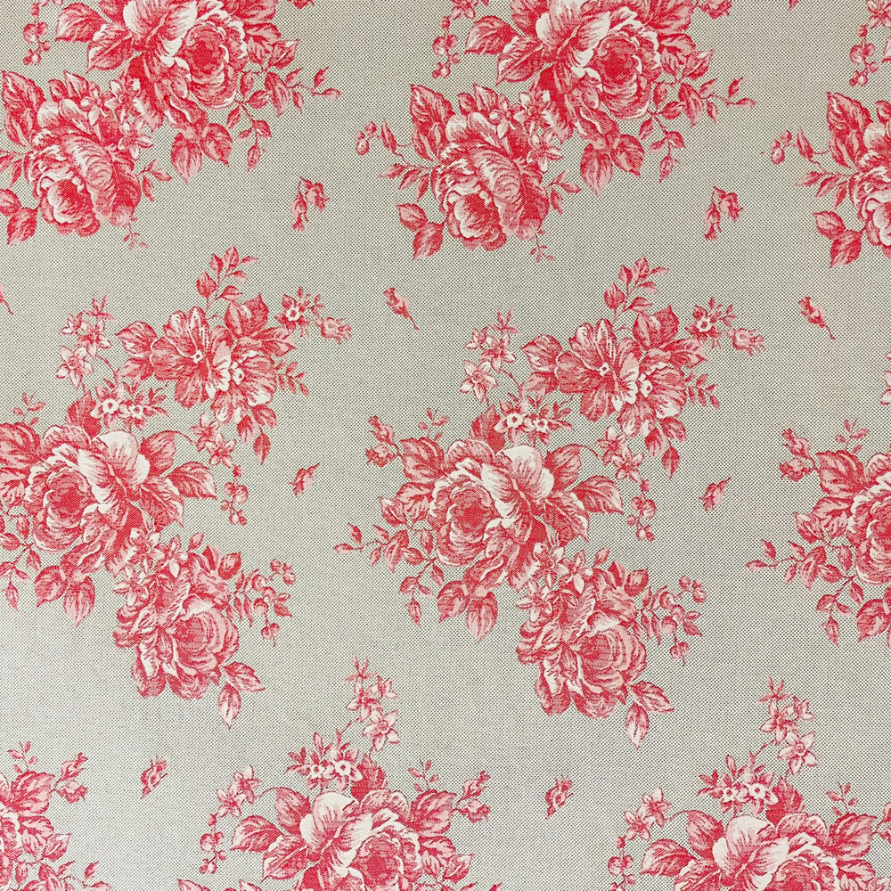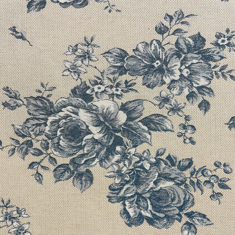 Dynamic and rich in colour it has a wonderful vintage charm and distinctive French flair, with bold rose blooms woven through a linen coloured cotton blend base cloth to achieve a lovely textural finish.