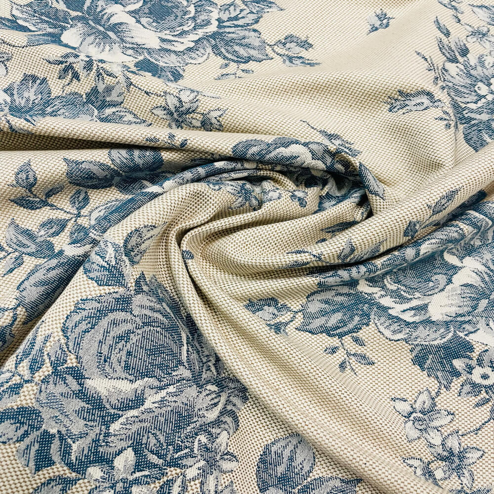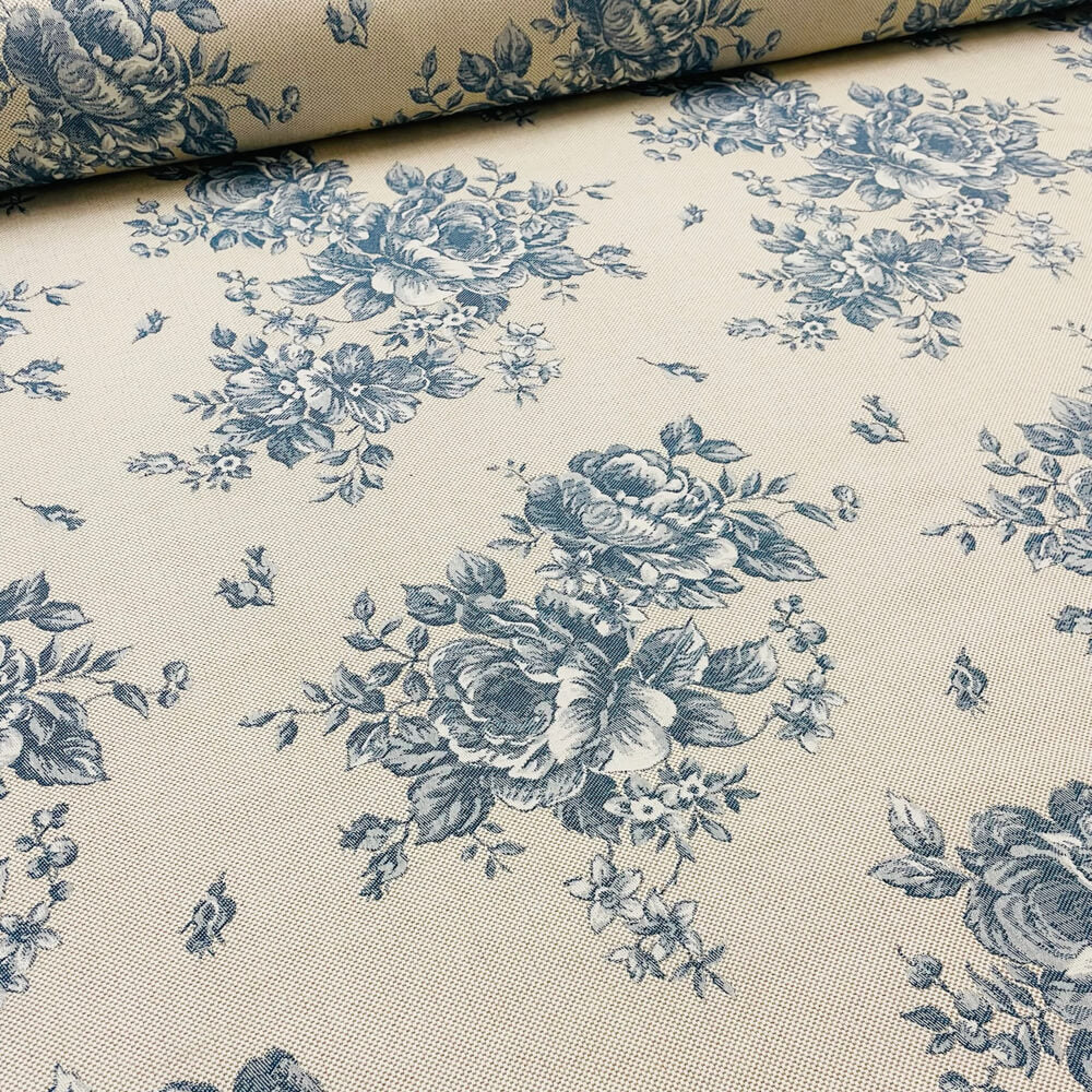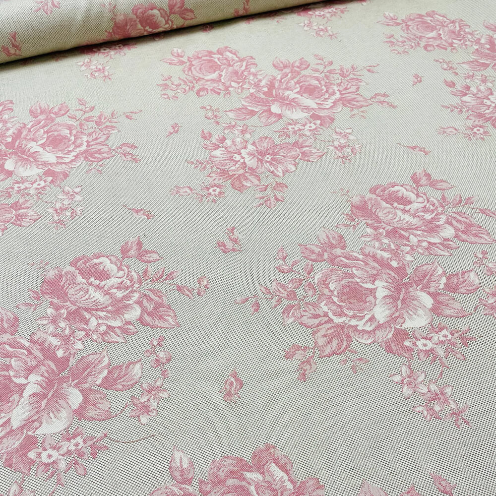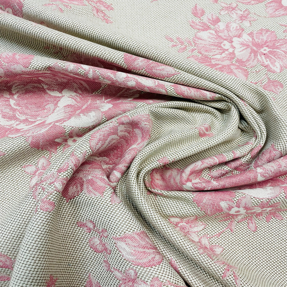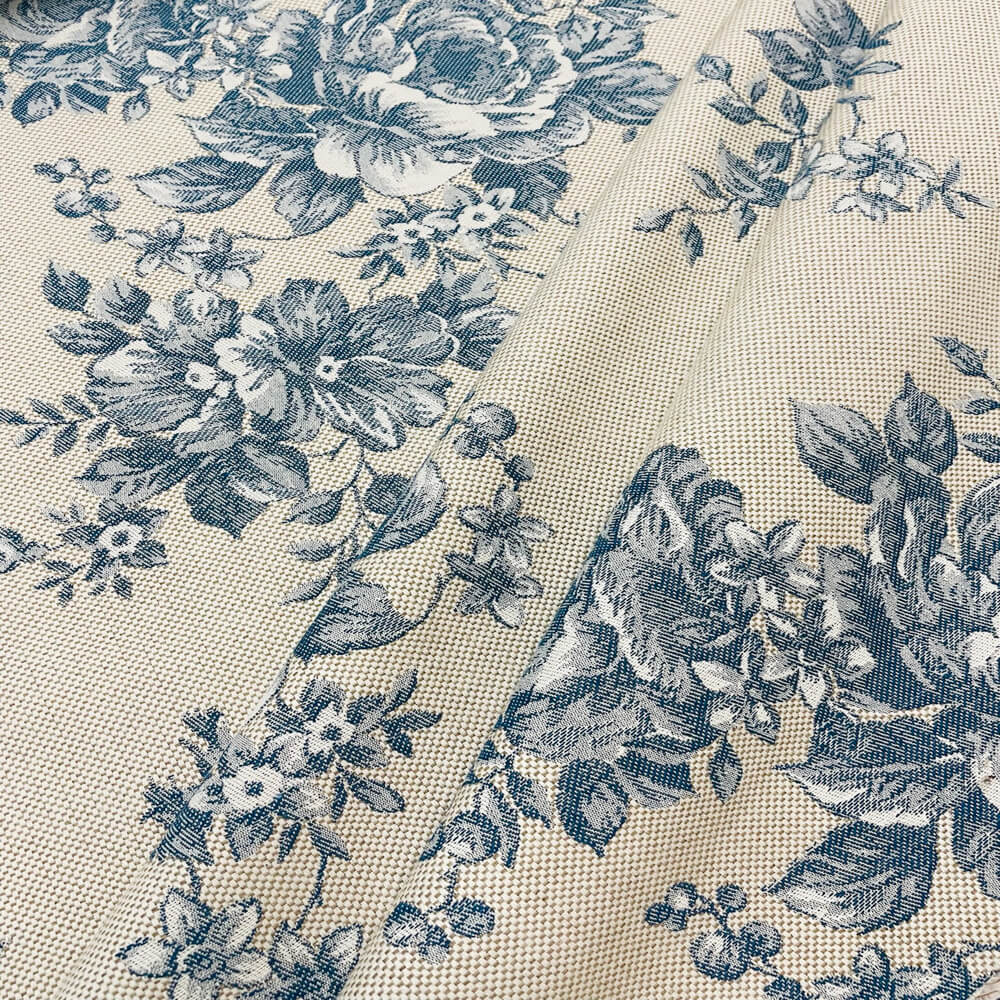 Dynamic and rich in colour it has a wonderful vintage charm and distinctive French flair, with bold rose blooms woven through a linen coloured cotton blend base cloth to achieve a lovely textural finish.