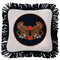 An outstanding linen cushion with a large embroidery on one side depicting a pair beautiful Asian tigers applied as a patch and on the other side made of Patola linen fabric. Filling: Duck feather, Composition: 100% Linen, Finishing: Black fringes