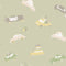 Grey-green children's wallpaper with the name Bilarna, translates Cars, creates a calm but playful impression in the children's room. Cute older model cars in shades of green, yellow, pink and mole are moving here and there across the wall. An airy motif with fun details that brighten up the children's room.
