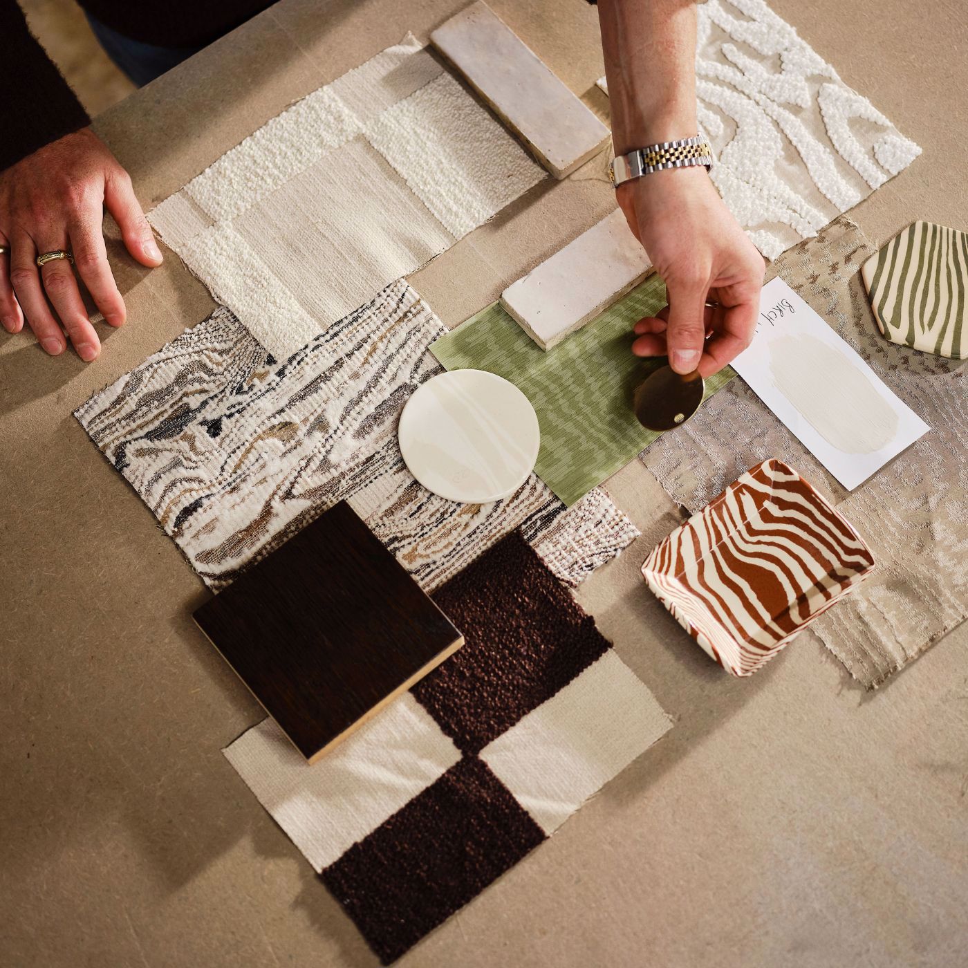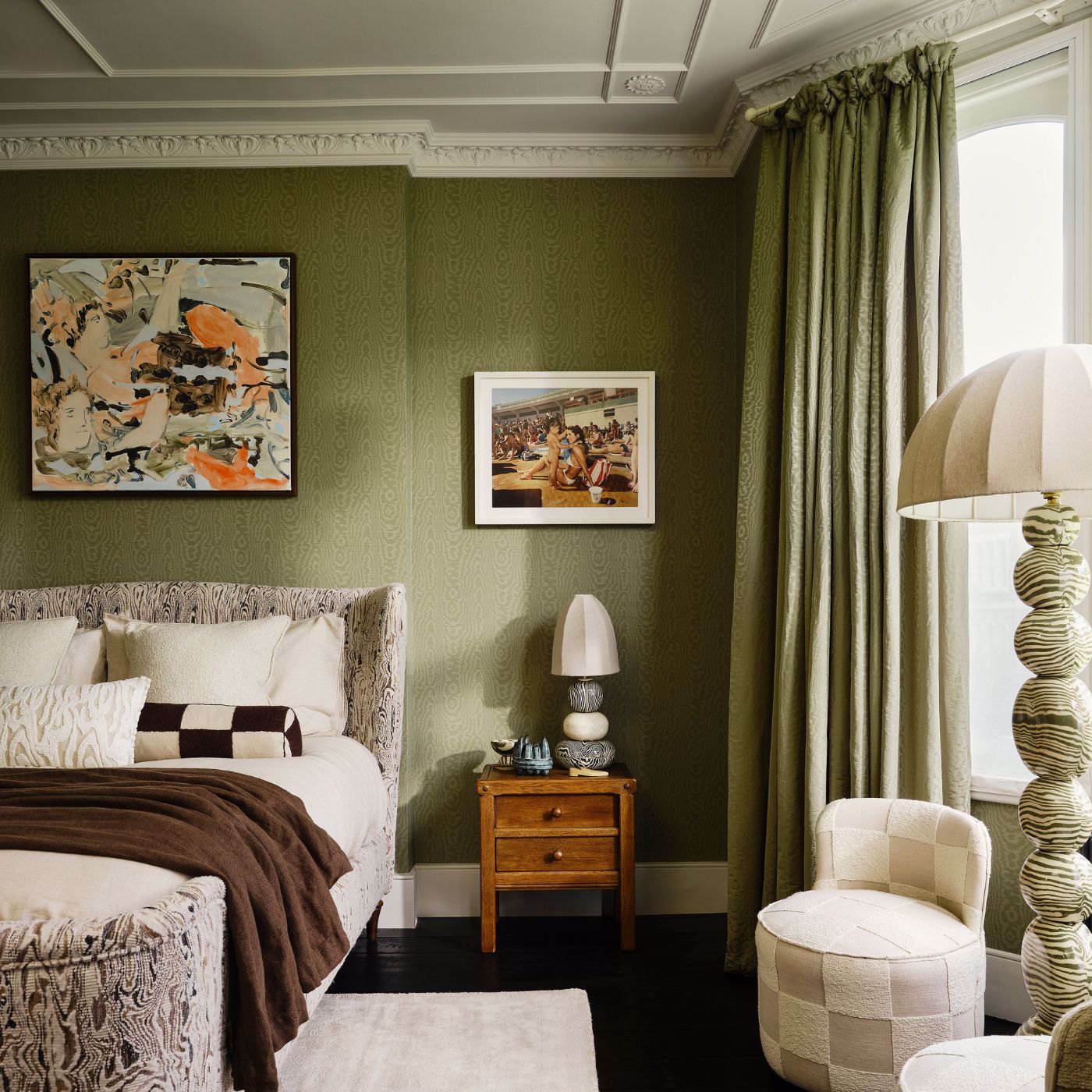 This large-scale checkerboard design is bold and dramatic in texture and scale. The embroidered bouclé texture on the coloured blocks mirrors Henry's work in ceramics.