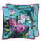 This glorious cushion depicts a lively painterly impression of bouquets of summer roses in shades of magenta and violet on a vibrant turquoise ground. This fully reversible cushion is digitally printed onto textured cotton and embellished on all sides with a statement fringed trimming in bright fuchsia pink. Material: Front/back= [100%Co], Trim= [70%Co 30%Met]