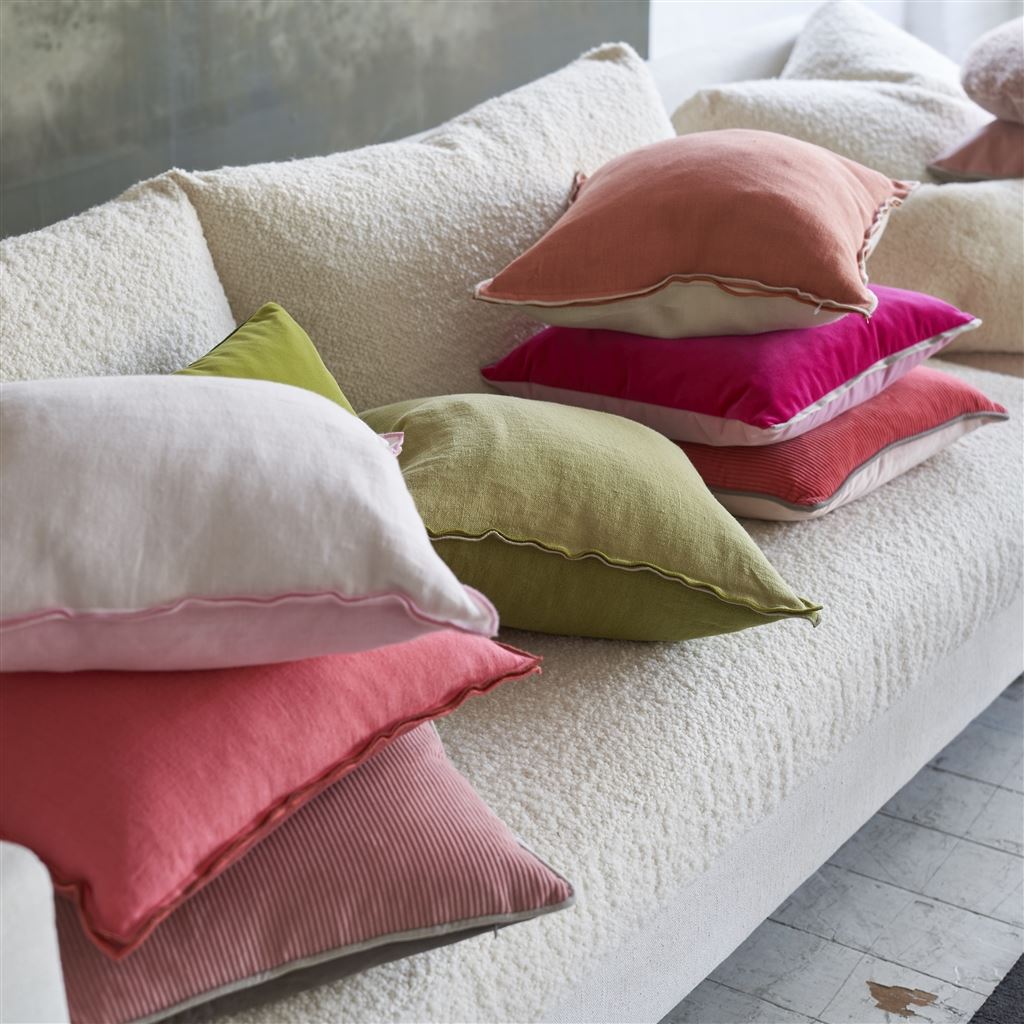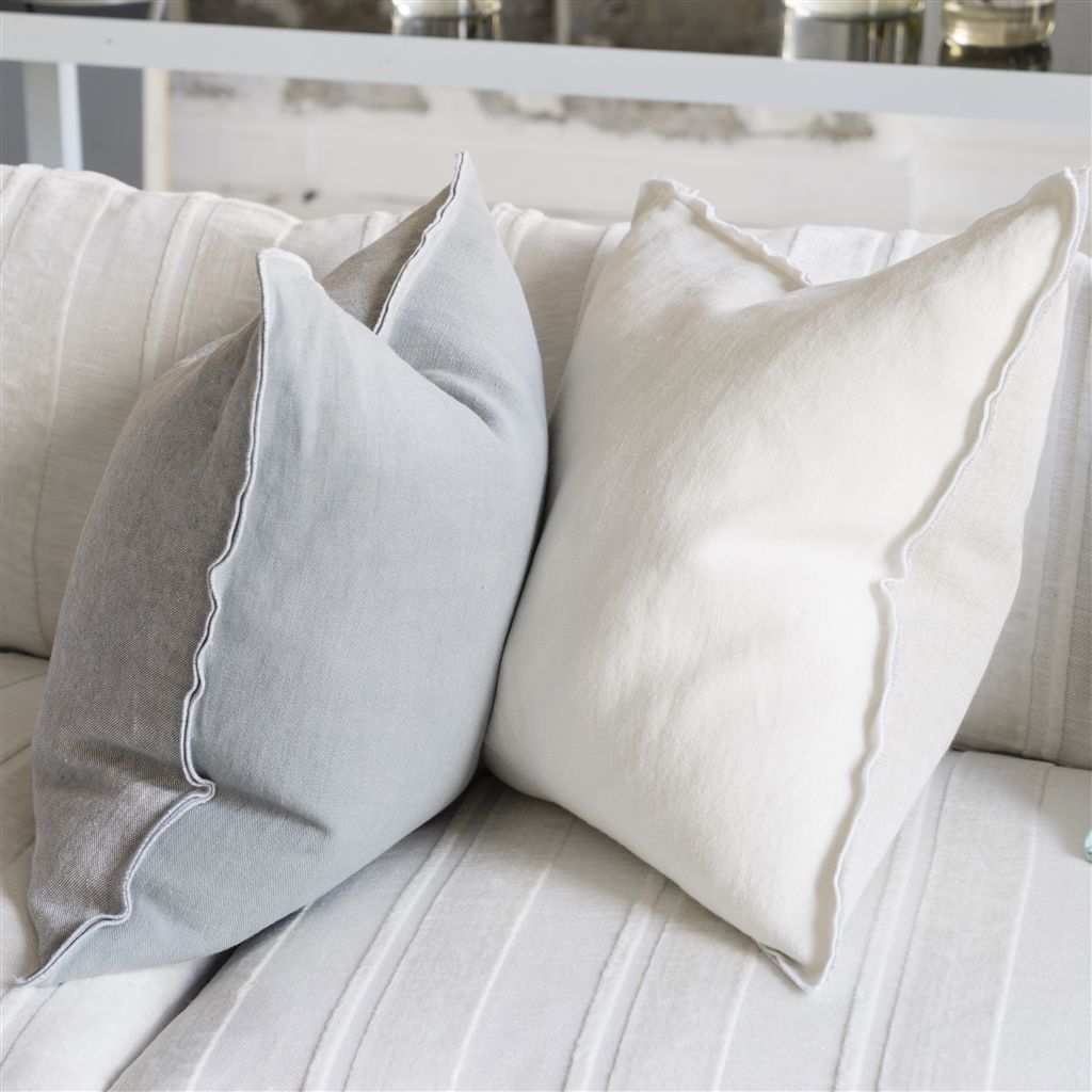 Two tone Brera Lino pure linen features in this contemporary square cushion, reversing to natural and unique double seams. Finished with white overlocked stitch borders, this modern cushion is the perfect complement for any scheme. All our cushions come with a luxurious feather pad.