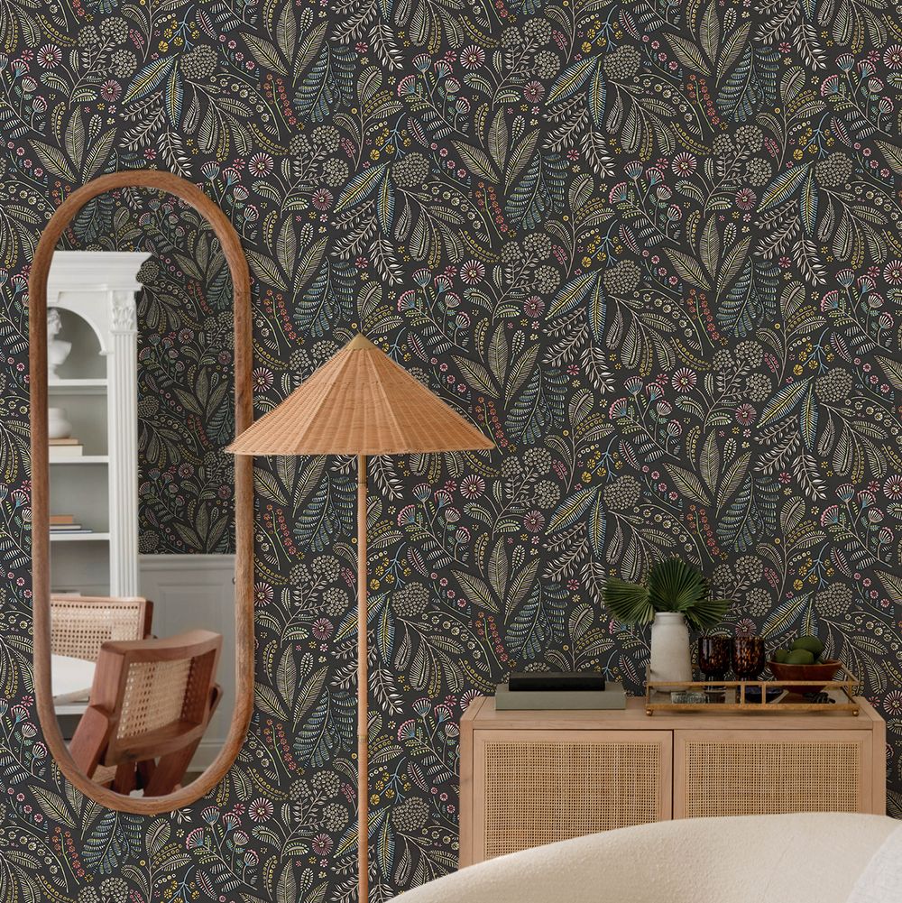 Striking floral illustrations and elegant leaf motifs create a beautiful all over effect, against a contrasting background.