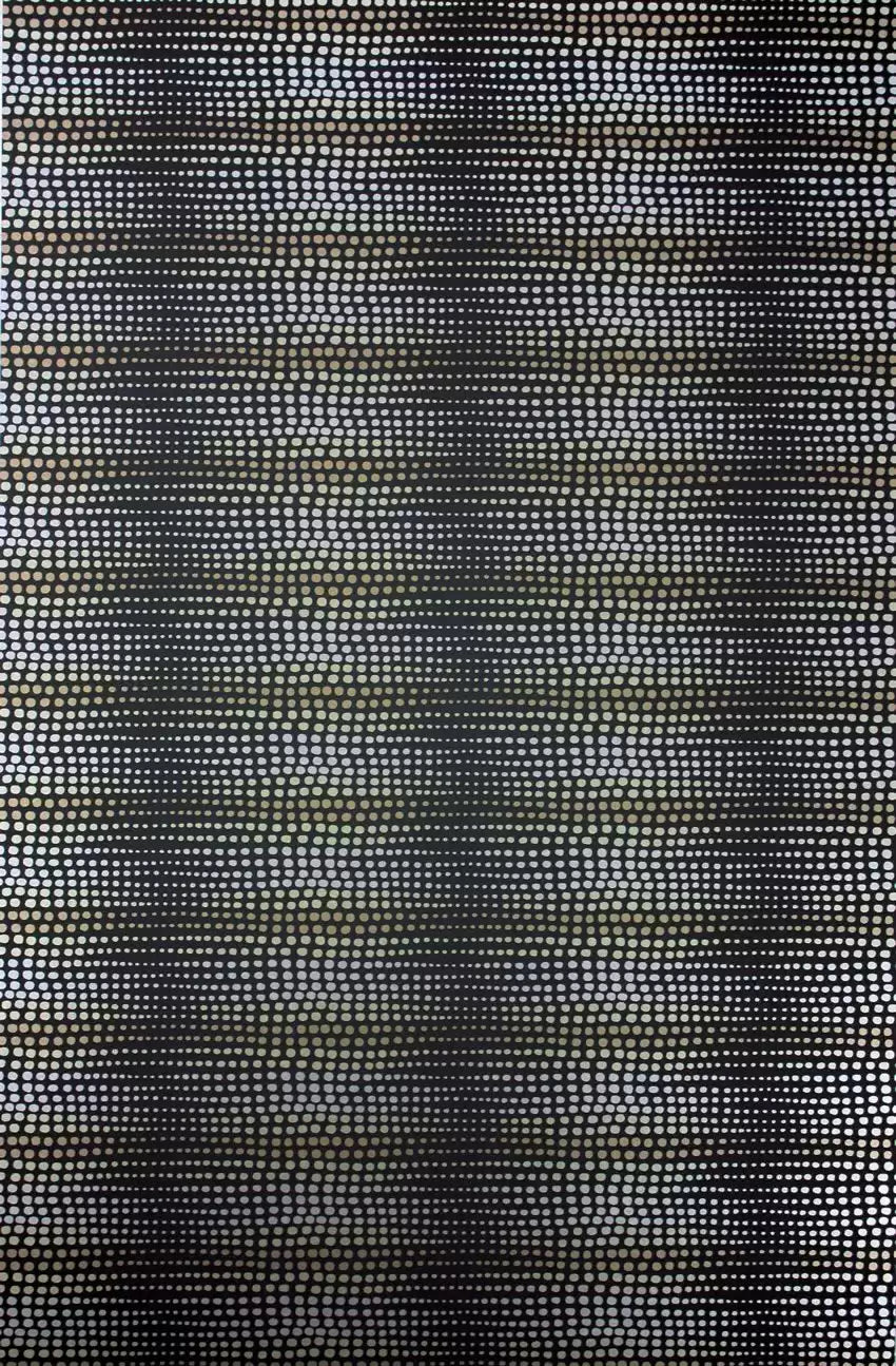An all-over design composed of polka dots in ombrestripes.