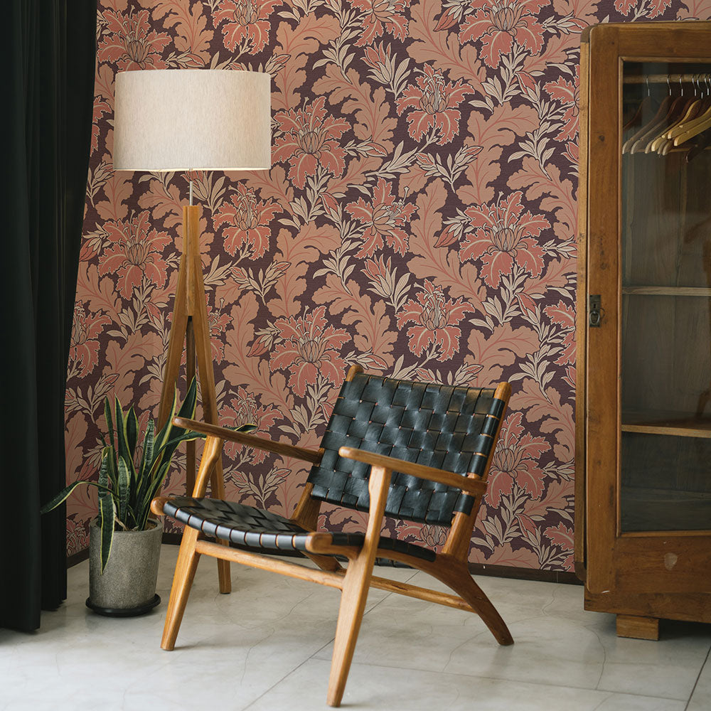 Bring vintage charm to your interiors with this elegant trailing leaf design. Ruffled flowers adorn the leaves in this nature inspired print.