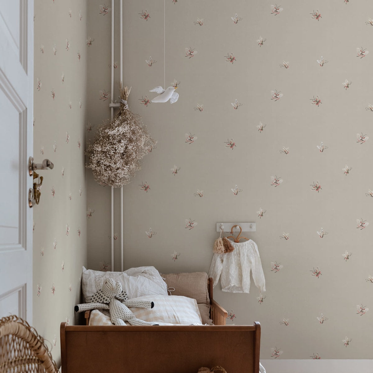 With weightless wings, the small, sweet butterflies float over the textile surface, bringing harmony to the room. The design is inspired by a lovely Chinese silk fabric from the 19th century.