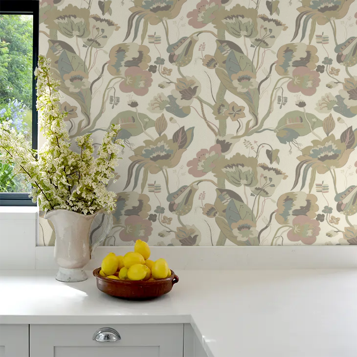 California originally called ‘Modern’ was designed in 1928 by the GP & J Baker studio. The stylised exotic flowers and leaves of this beautiful design provide a perfect example of 20th century modernism.