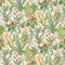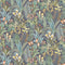 An all-over pattern of aquatic plants and lily flowers presented on a textured linen-look ground.