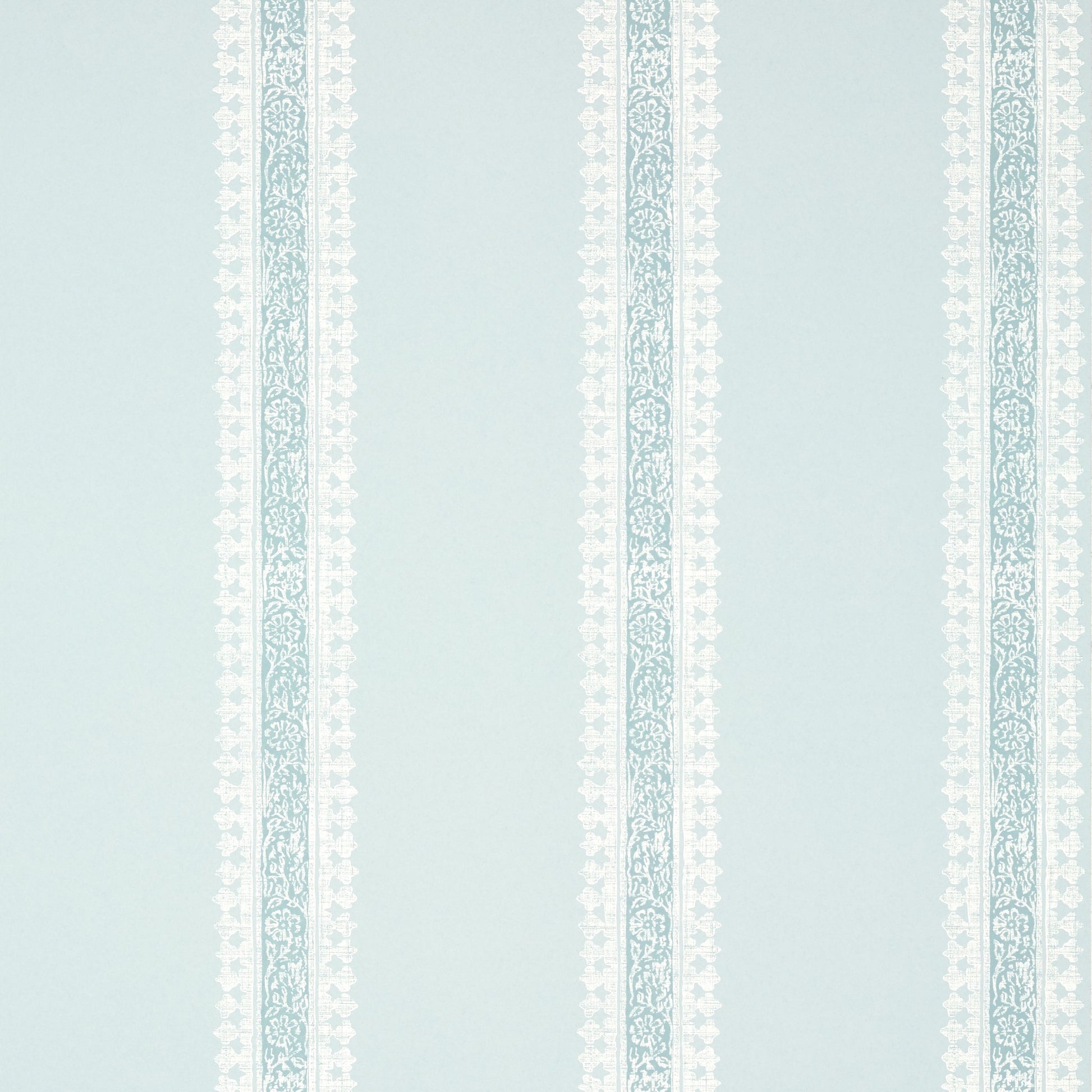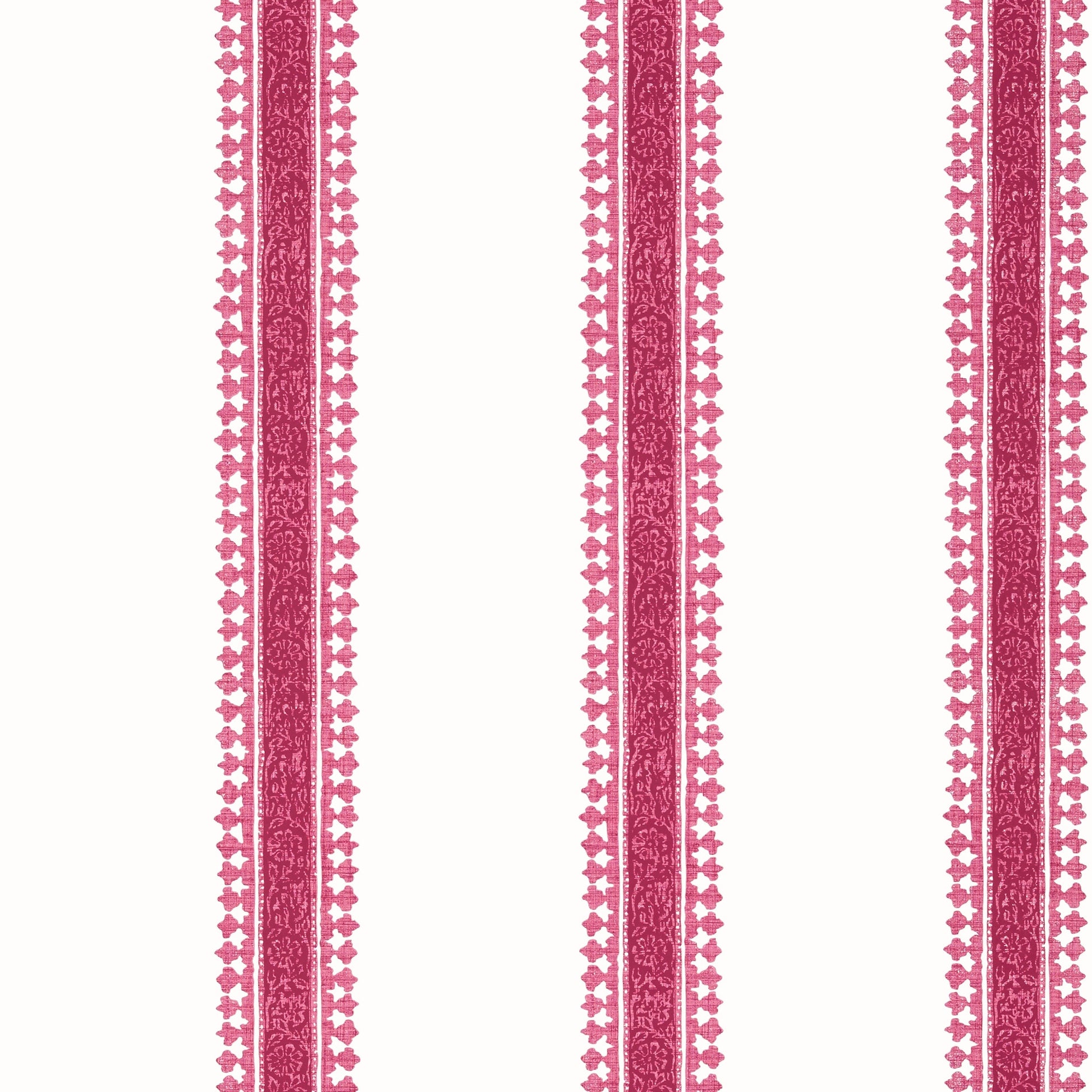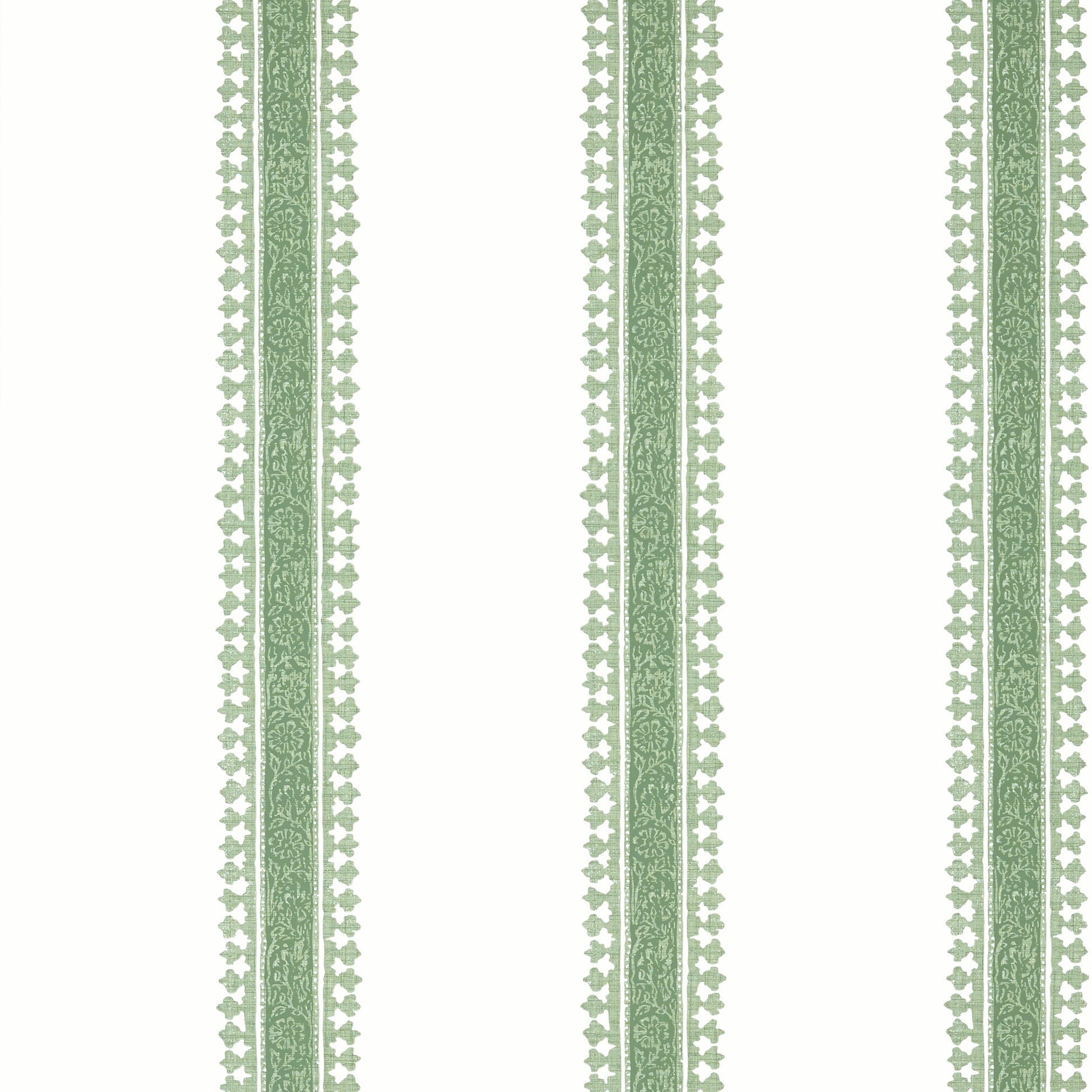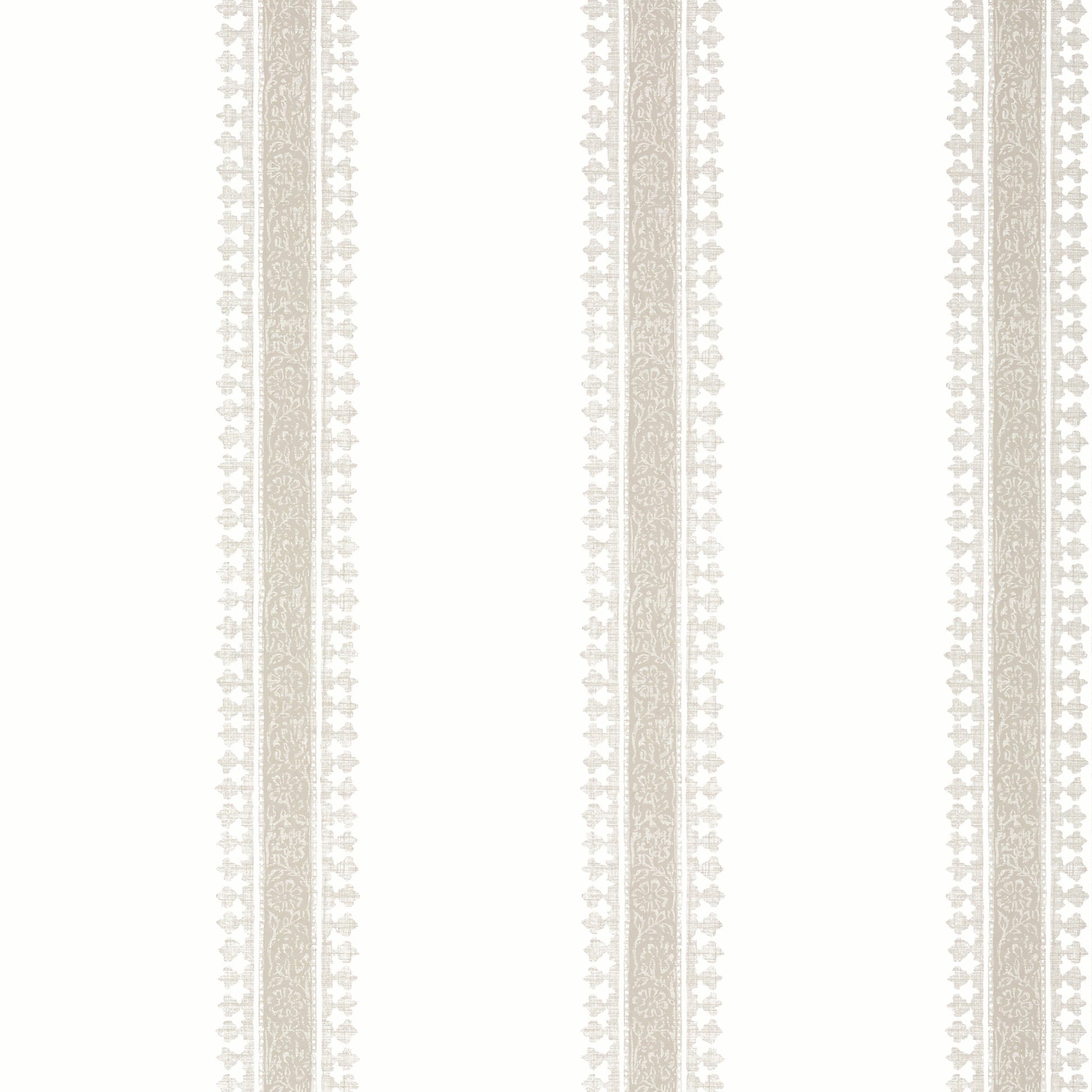 Cambridge Stripe is a nod to a 19th century block print fabric from India. This wallcovering maintains the authentic hand-block appeal with variations in hues and a linen-like texture over an ornate stripe with tiny buds bordering the center.