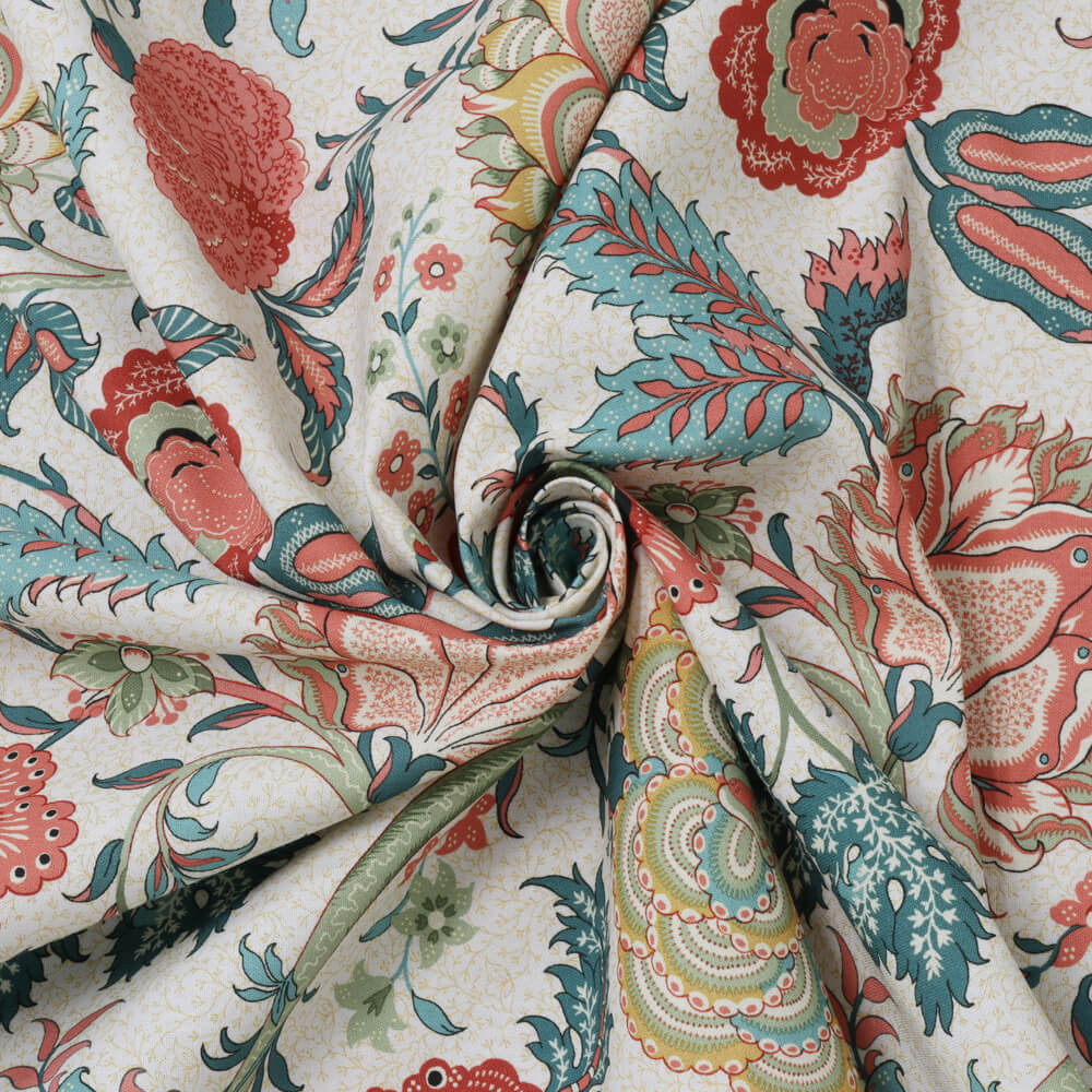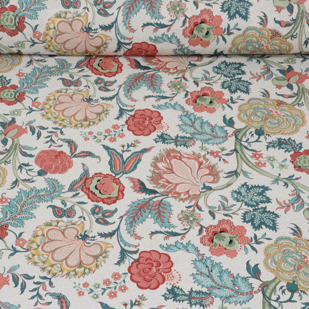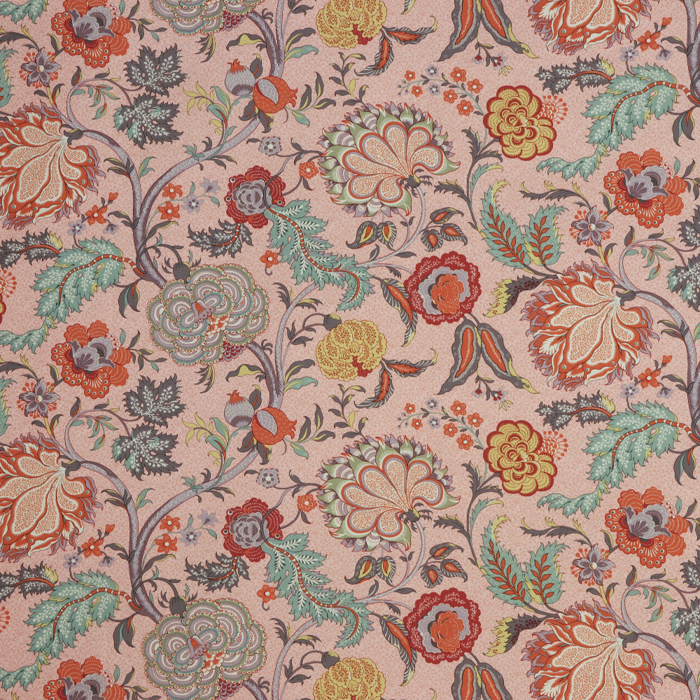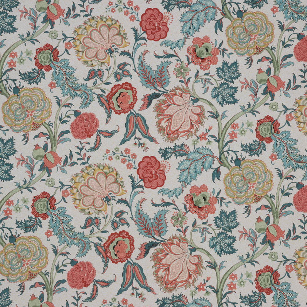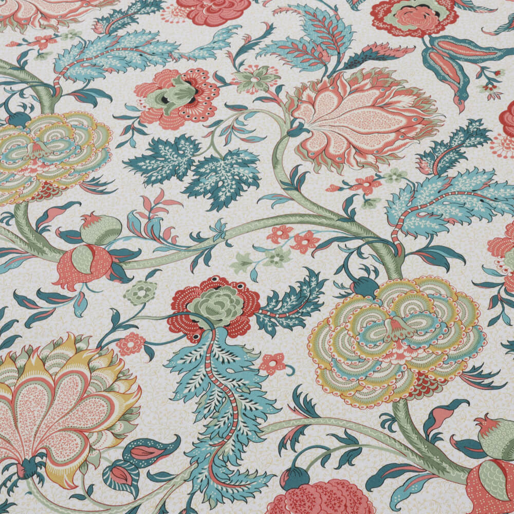 A large scale Tree of Life design depicting trailing floral patterns inspired by traditional block print patterns of Indian origin. A bright and uplifting fabric that would suit both traditional and contemporary interiors.