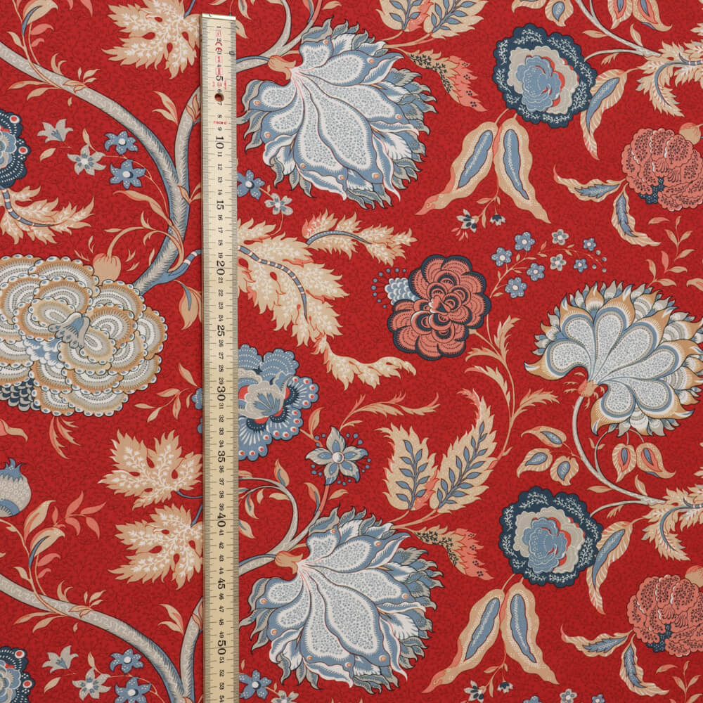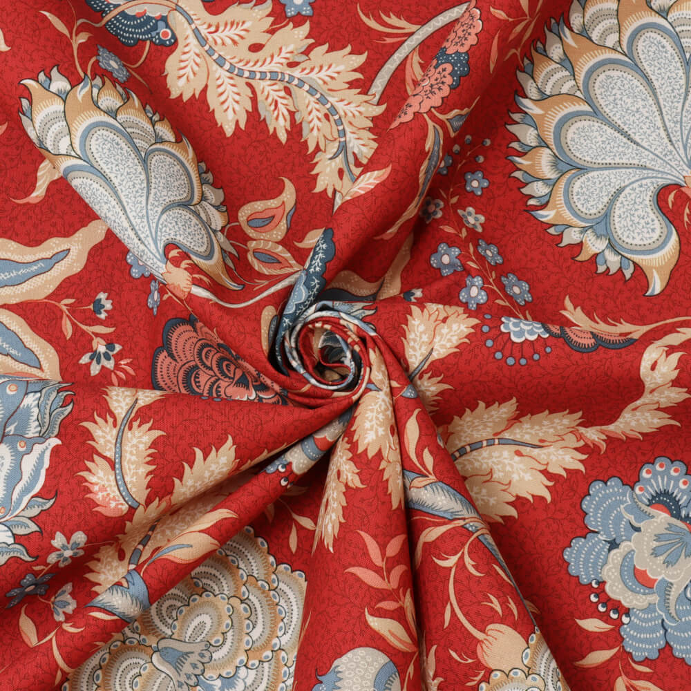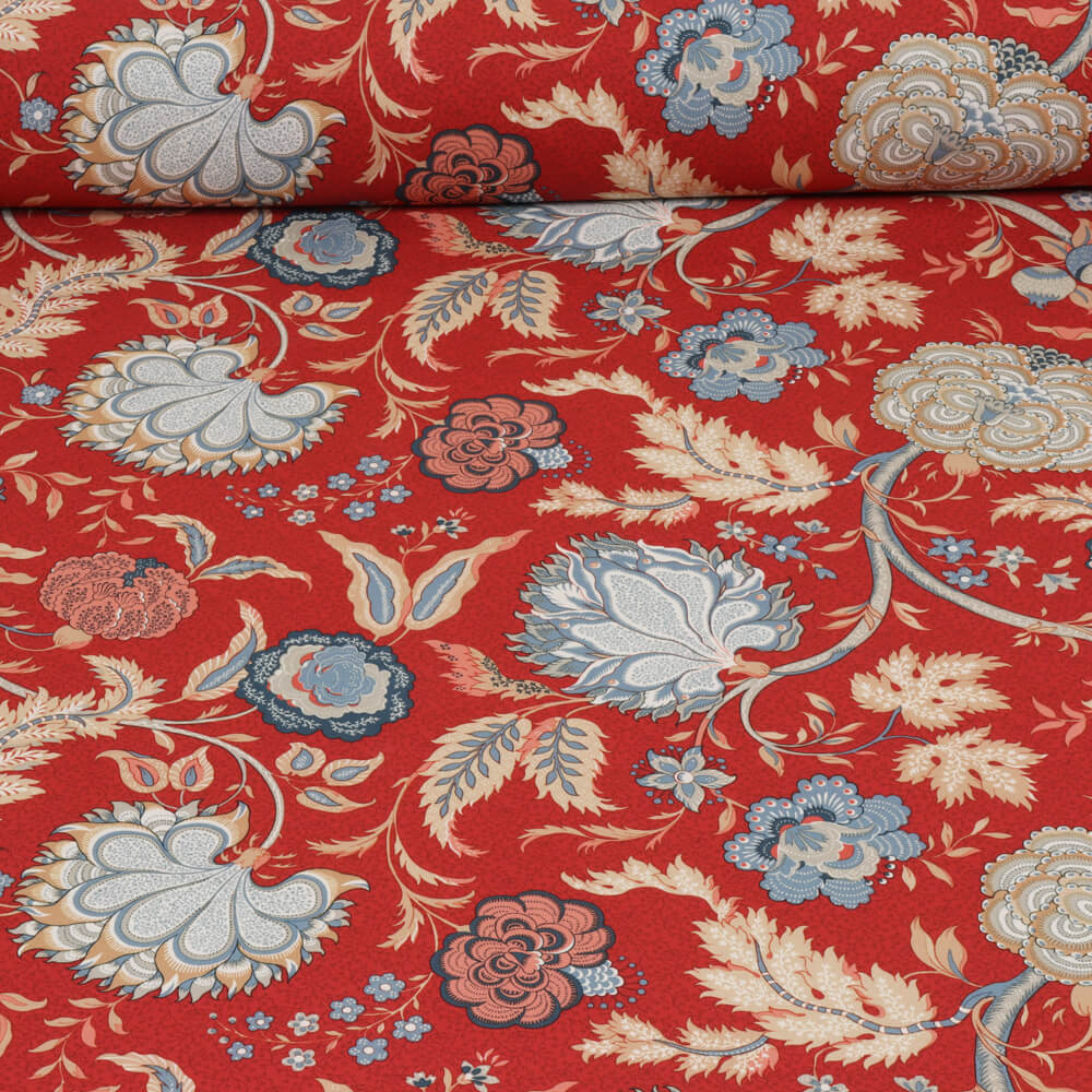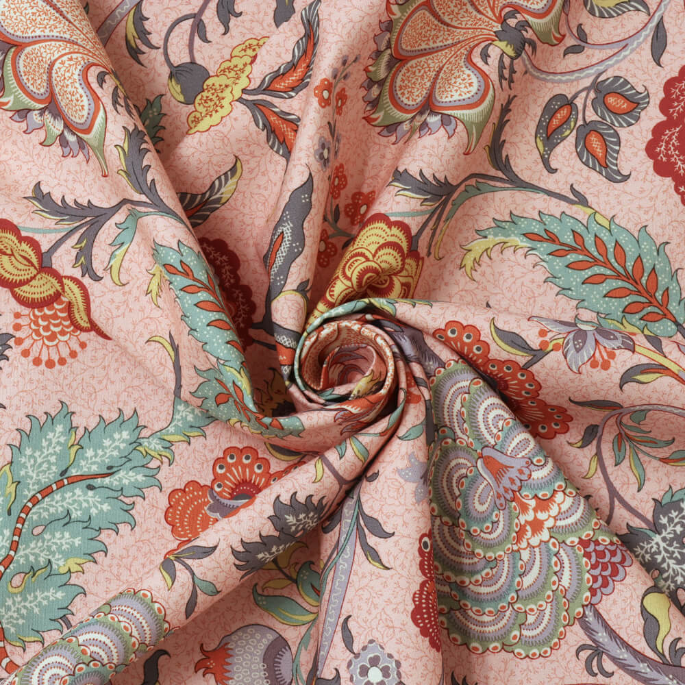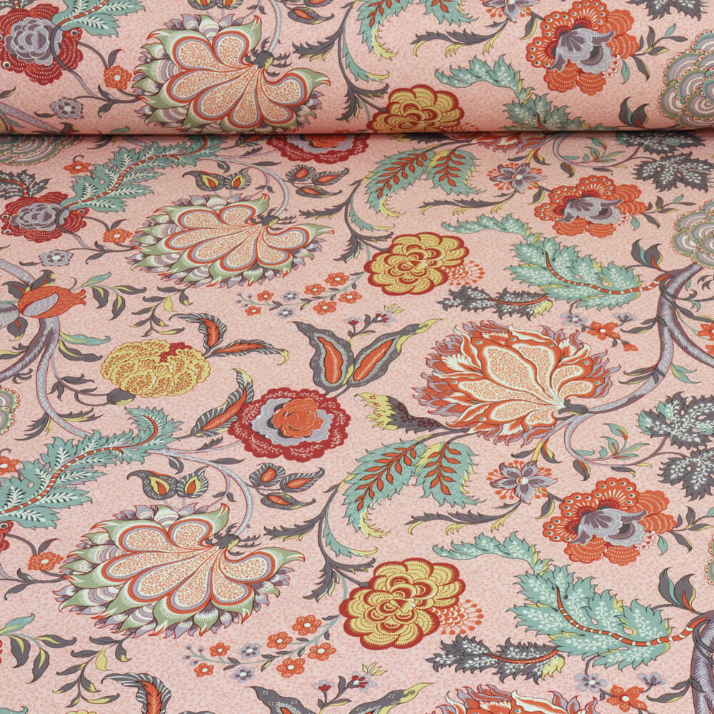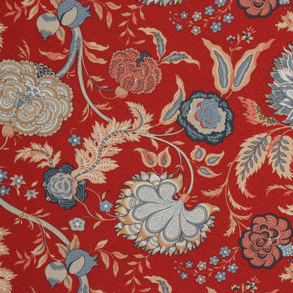 A large scale Tree of Life design depicting trailing floral patterns inspired by traditional block print patterns of Indian origin. A bright and uplifting fabric that would suit both traditional and contemporary interiors.