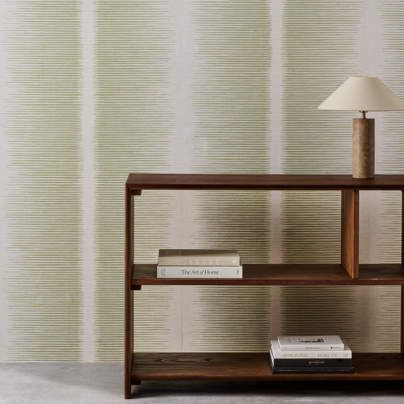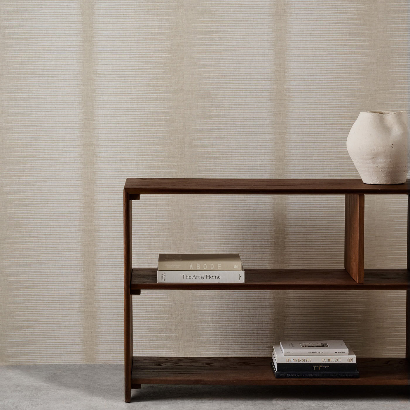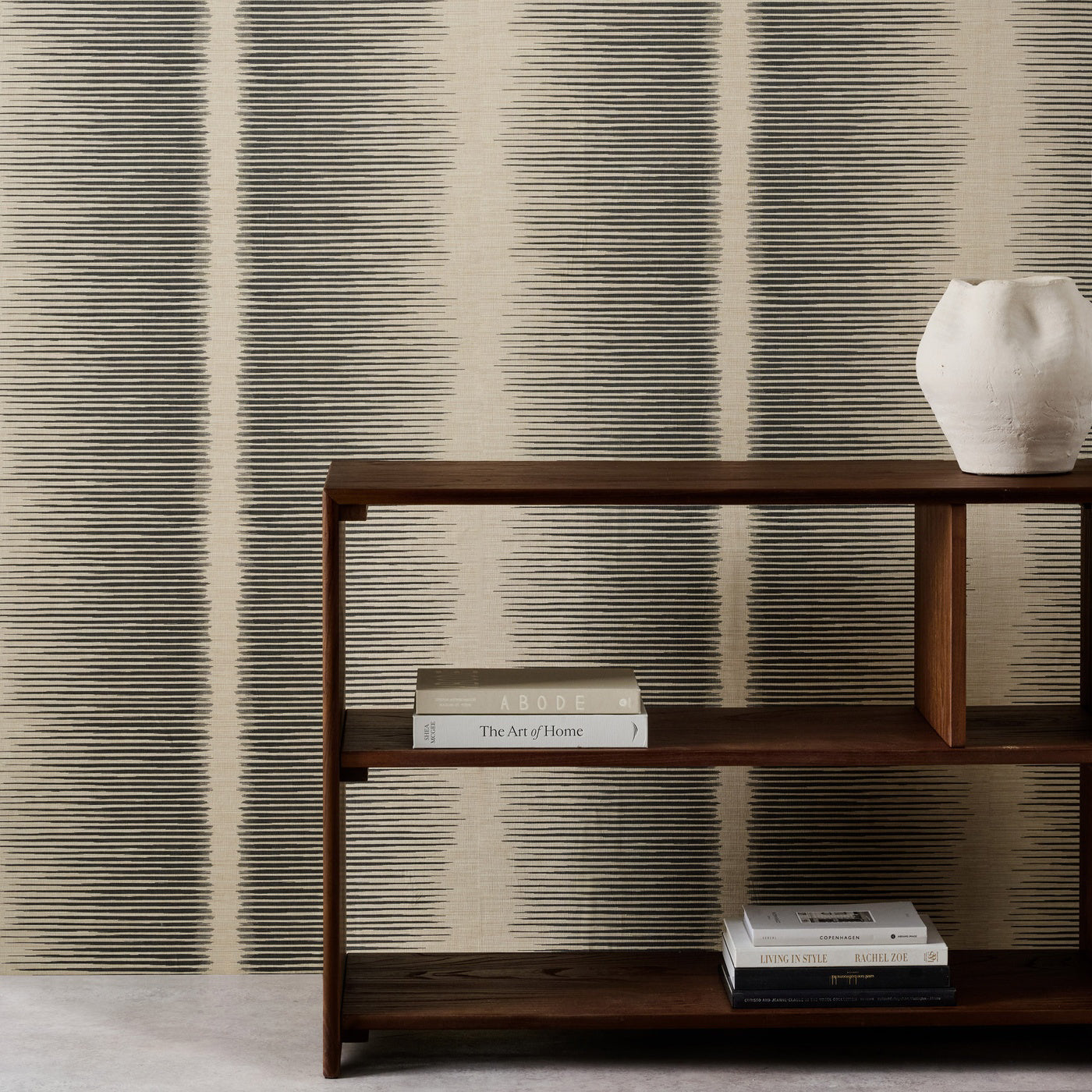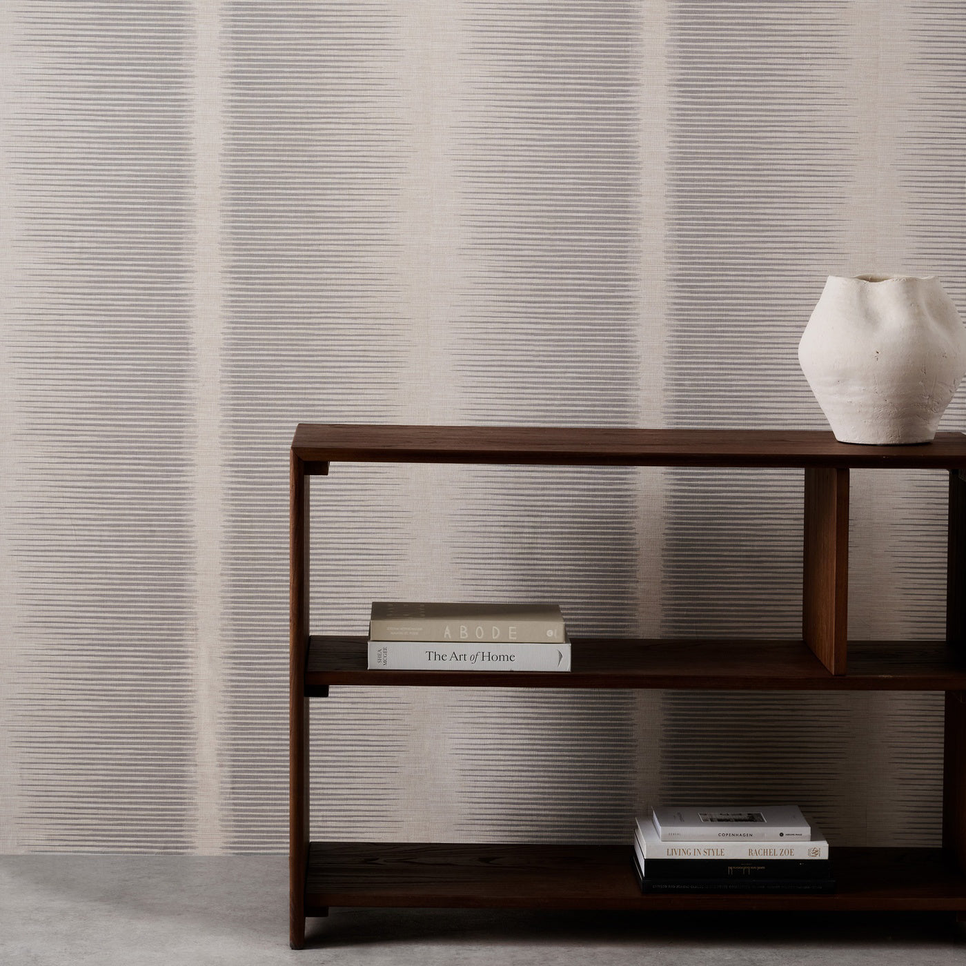 A strong stripe design with fine horizontal lines creating a broken ombré effect. Wide width product.