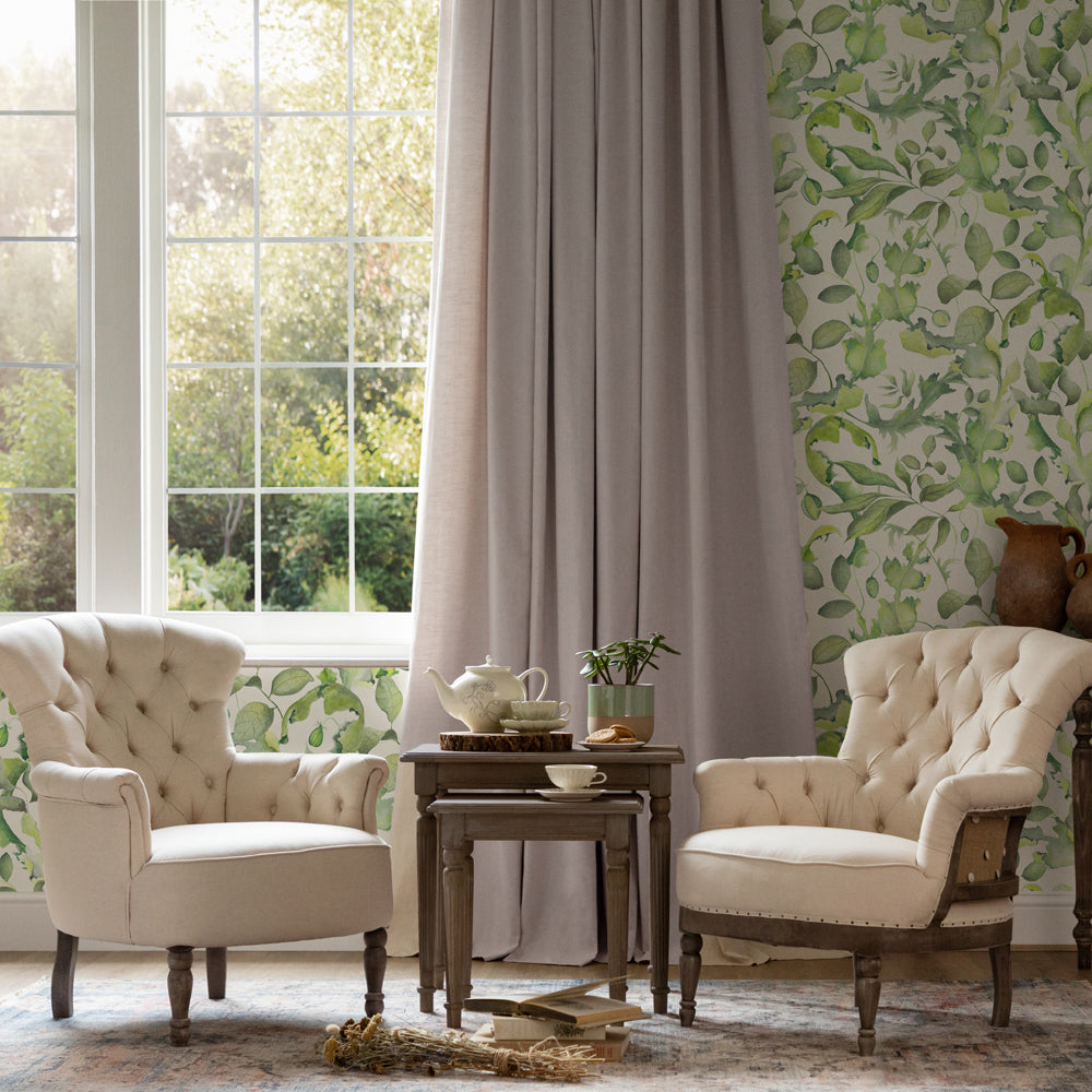 Transform your living space into a modern sanctuary with the Claudia wide-width, non-woven wallpaper. With a matte finish that enhances its digitally printed design, this wallpaper showcases a vibrant watercolour study of foliage and florals. Its contemporary twist on a classic country theme brings a touch of elegance and warmth to any room. The wide width design minimizes seams, providing a seamless, professional look that is both sophisticated and stylish. The vivid colours and artistic design create a captivating focal point, effortlessly blending modern aesthetics with timeless charm. Elevate your home’s interior with this stunning piece, and enjoy a space that radiates both creativity and comfort.