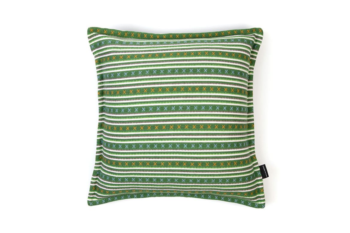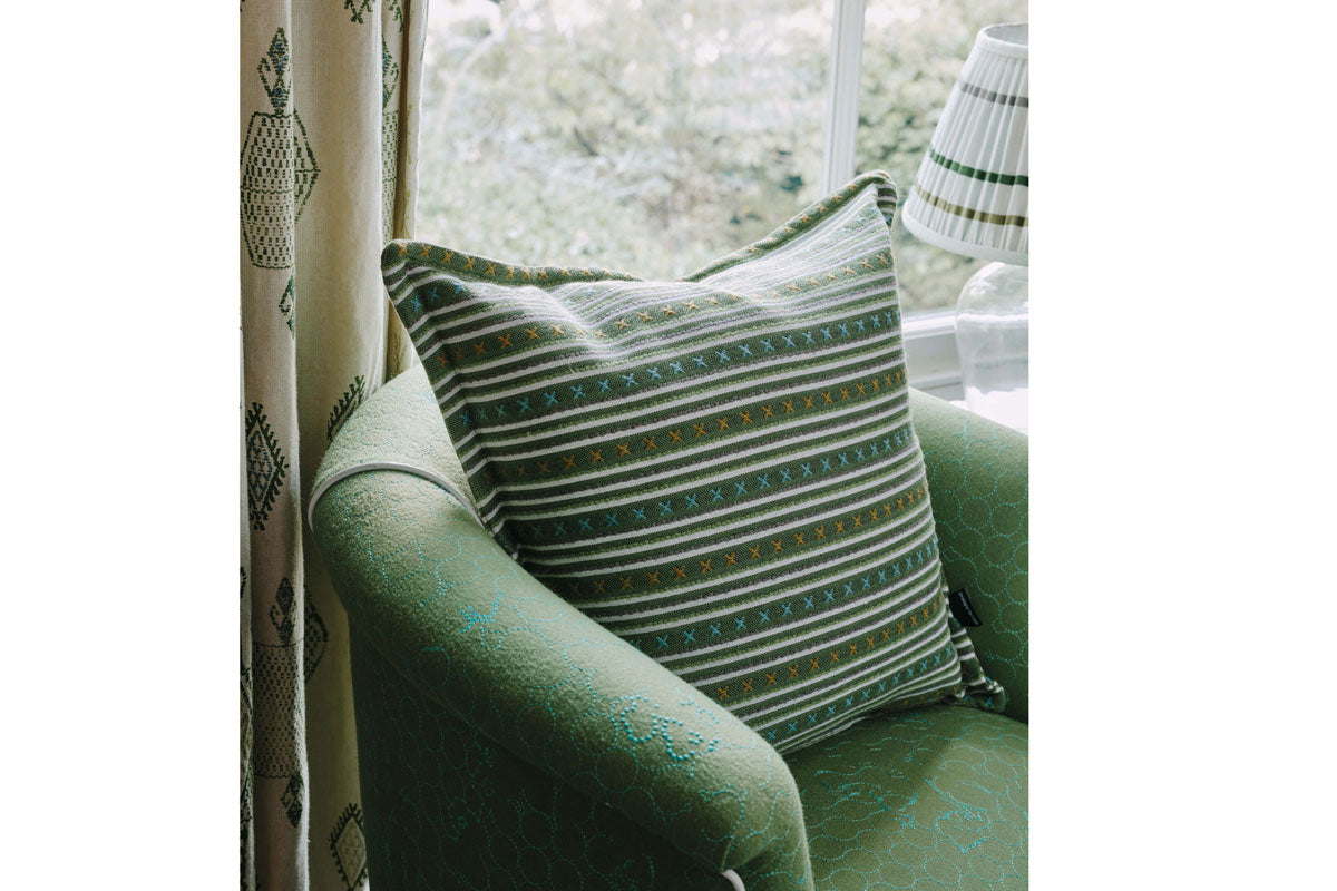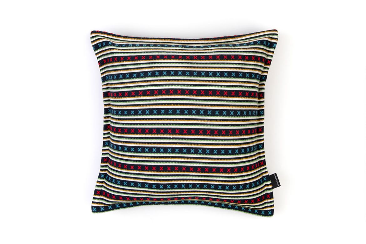 'Criss Cross' is a textured weave by Kit Kemp that features a small repetitive motif. The small X motif represents a fabric stitch, in particular the uneven cross-stitch that joins together old South American blankets. The cushion is presented in three unique colourways of the fabric. Material: 58% Cotton 23% Polyacrylic 7% Virgin Wool 3% Viscose 3% Polyamide 3% Polyester 3% Alpaca