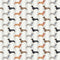 Created by Abi Bartlett: a parade of smart, Dachshunds, row upon row; the grey and caramel-coloured ones go this way while the mottled fur and black ones go that away! All this doggie fun is set against a dual (mid/light) grey striped background.