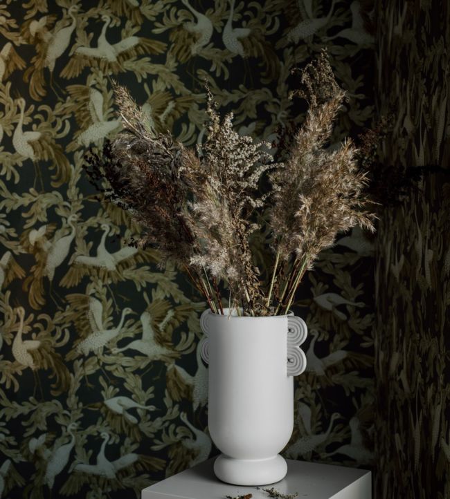The wonderful Dancing Crane wallpaper delights the eyes with its graceful artistry. Strongly associated with spring-time and revered in many Asian cultures, the crane's elegant dance is depicted here in an exquisitely hand-drawn watercolour pattern.