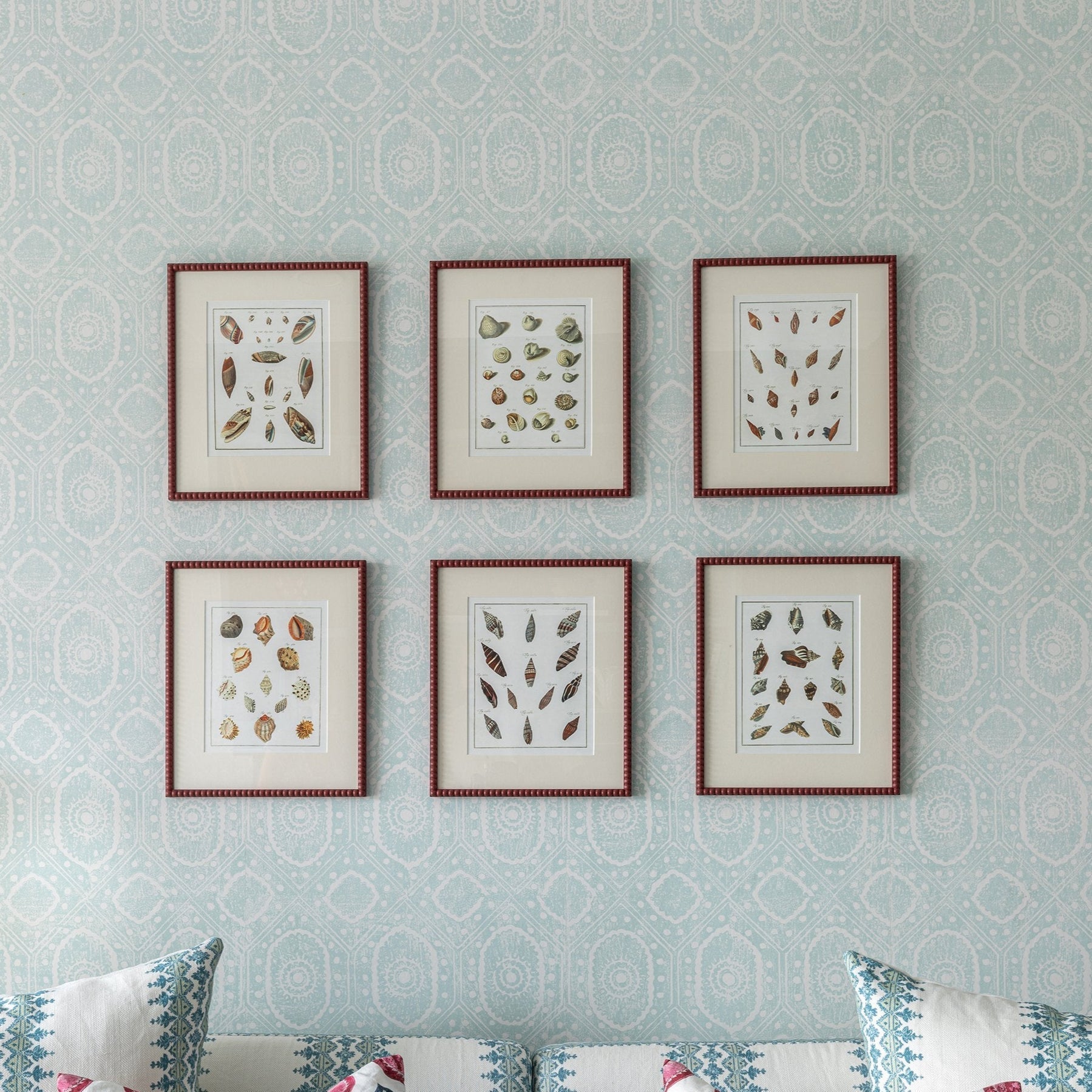 A beautiful block print style trellis design, in-filled with circles and dots.