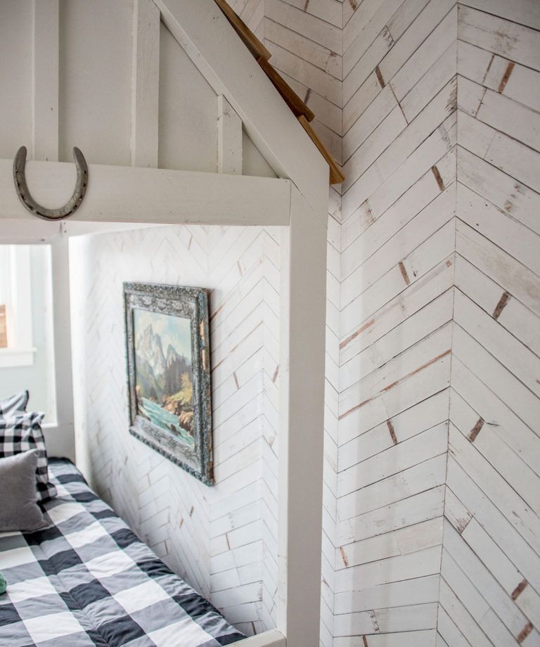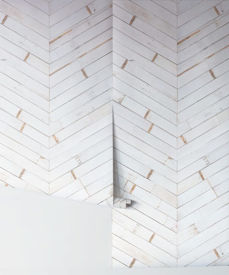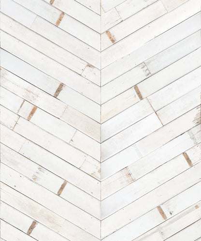 Inspired by the painted wood paneling one might see adorning the interior of a lovely coastal cottage, this classic white timber chevron wallpaper is beautifully distressed, giving it a realistic rustic charm. It adds both a healthy dose of texture and clean lines creating warmth and interest to any space. Its neutral colour tone offers the ideal backdrop to achieve a cottage or farmhouse style design.